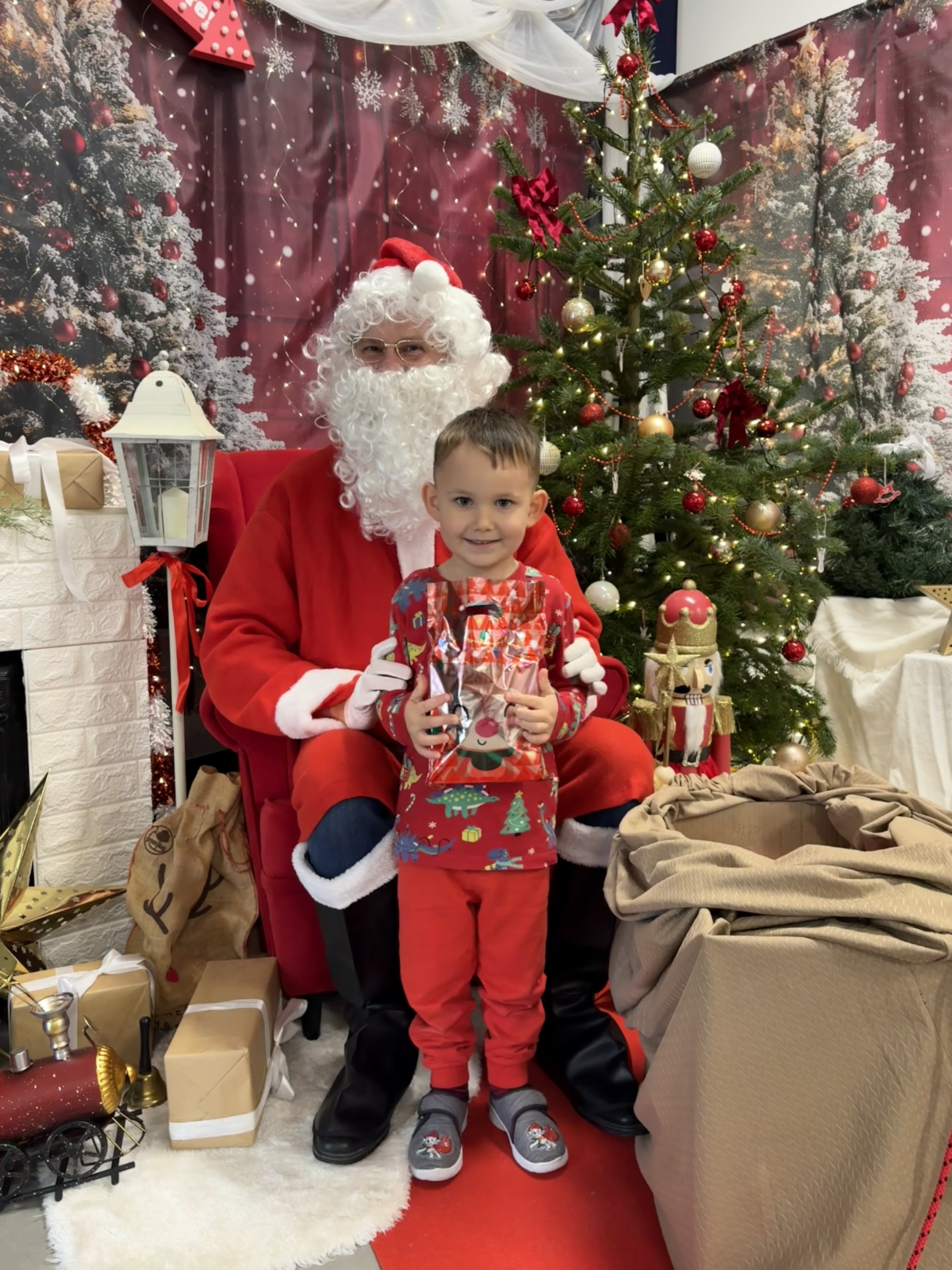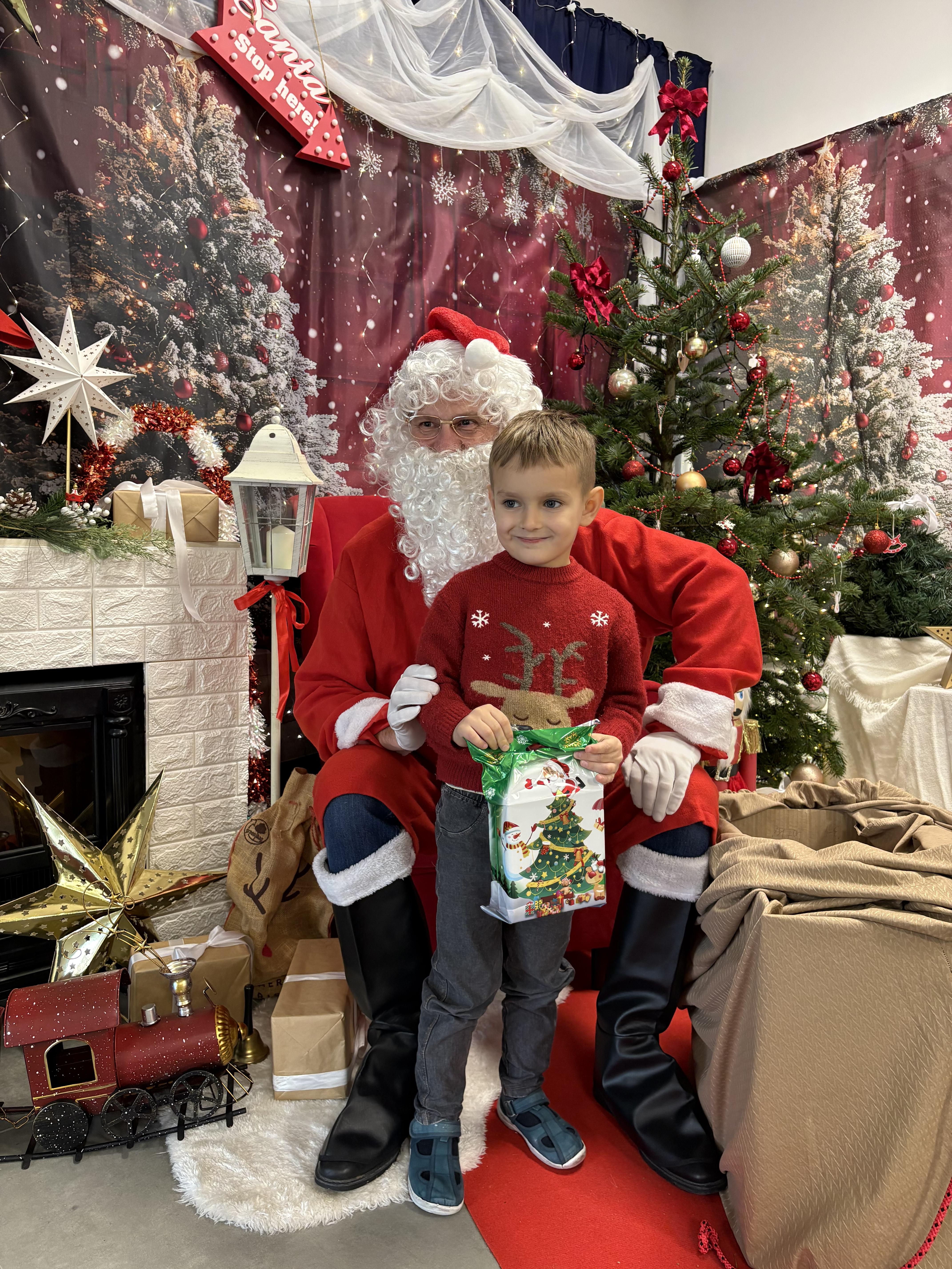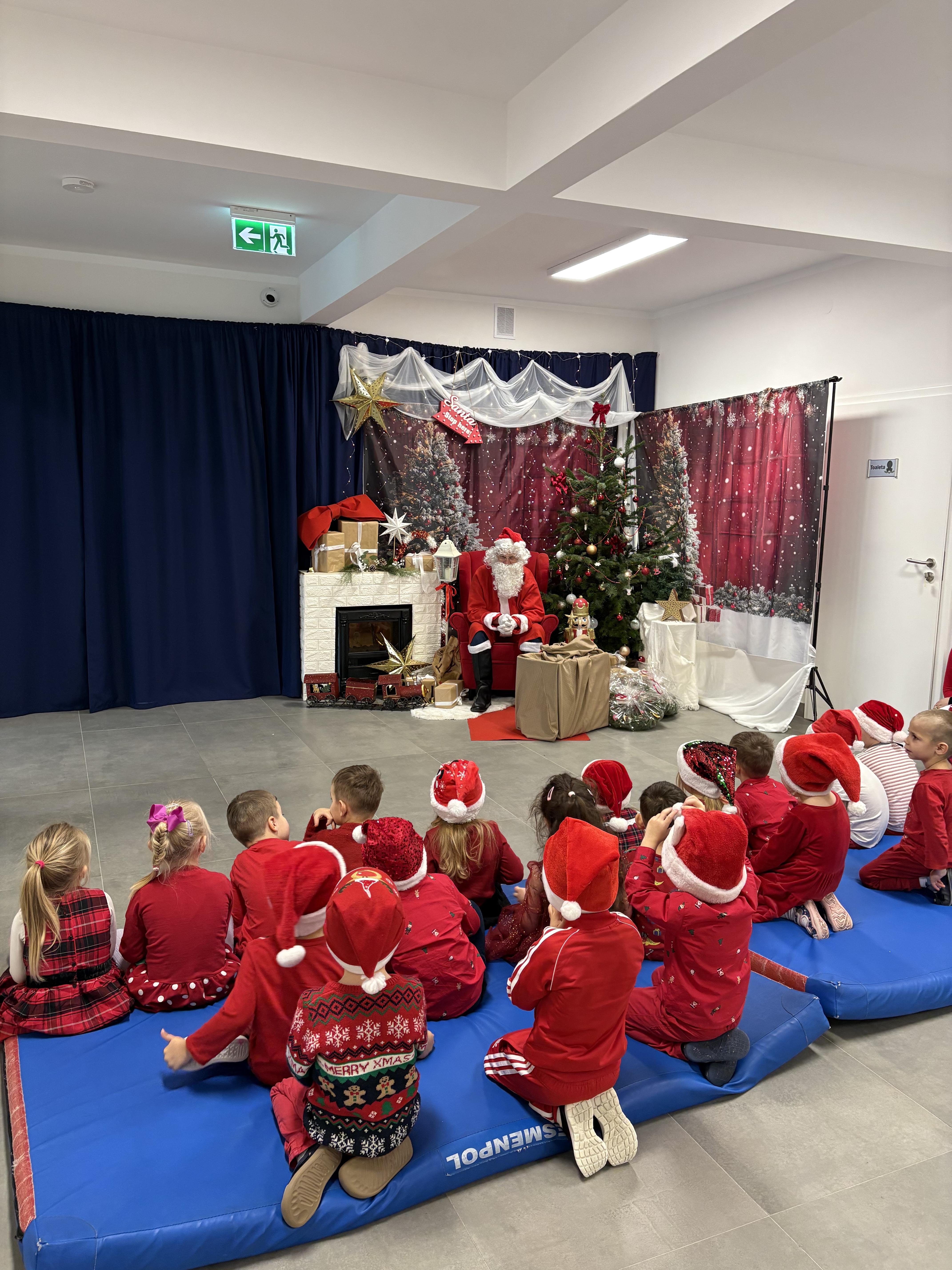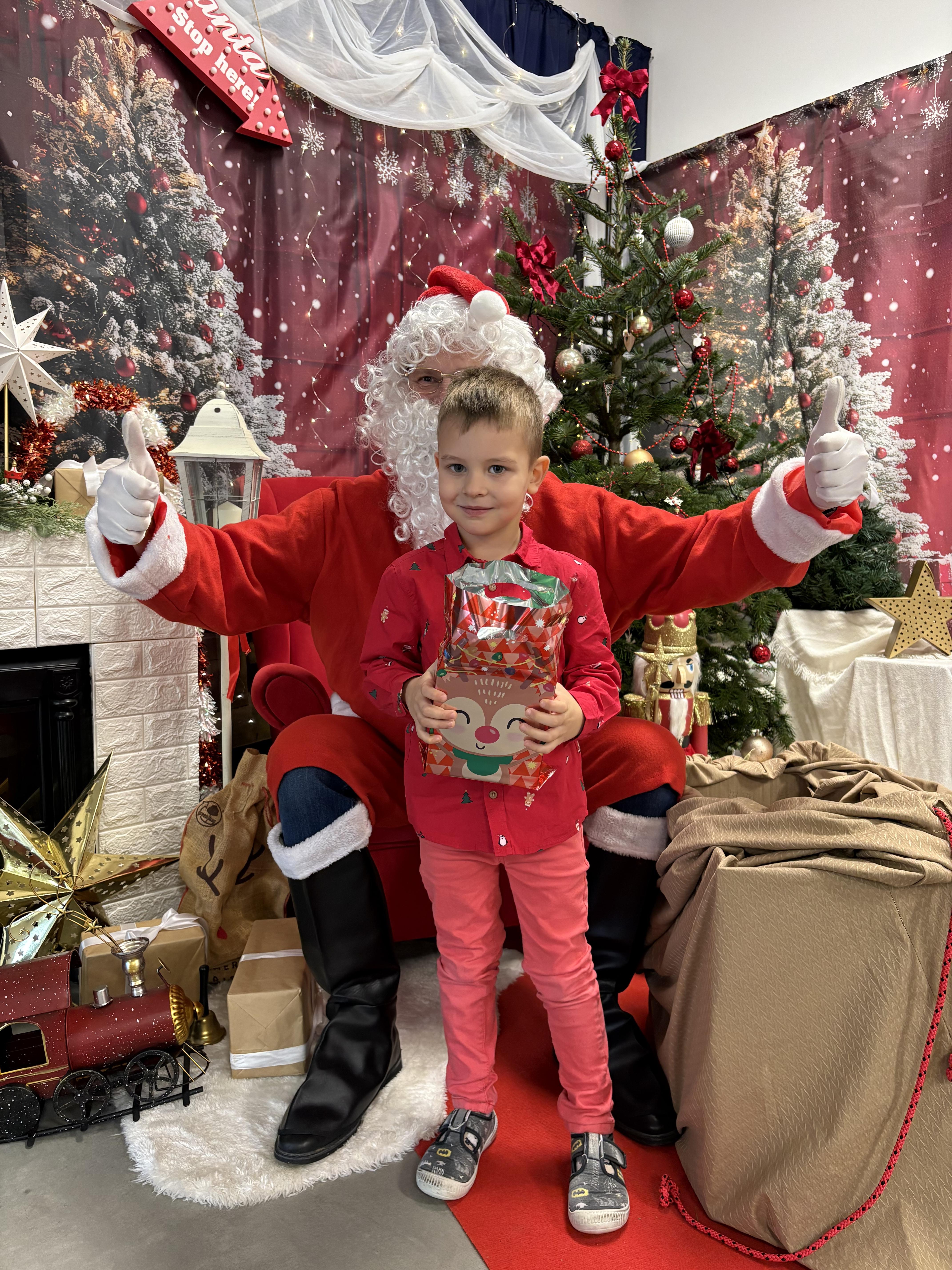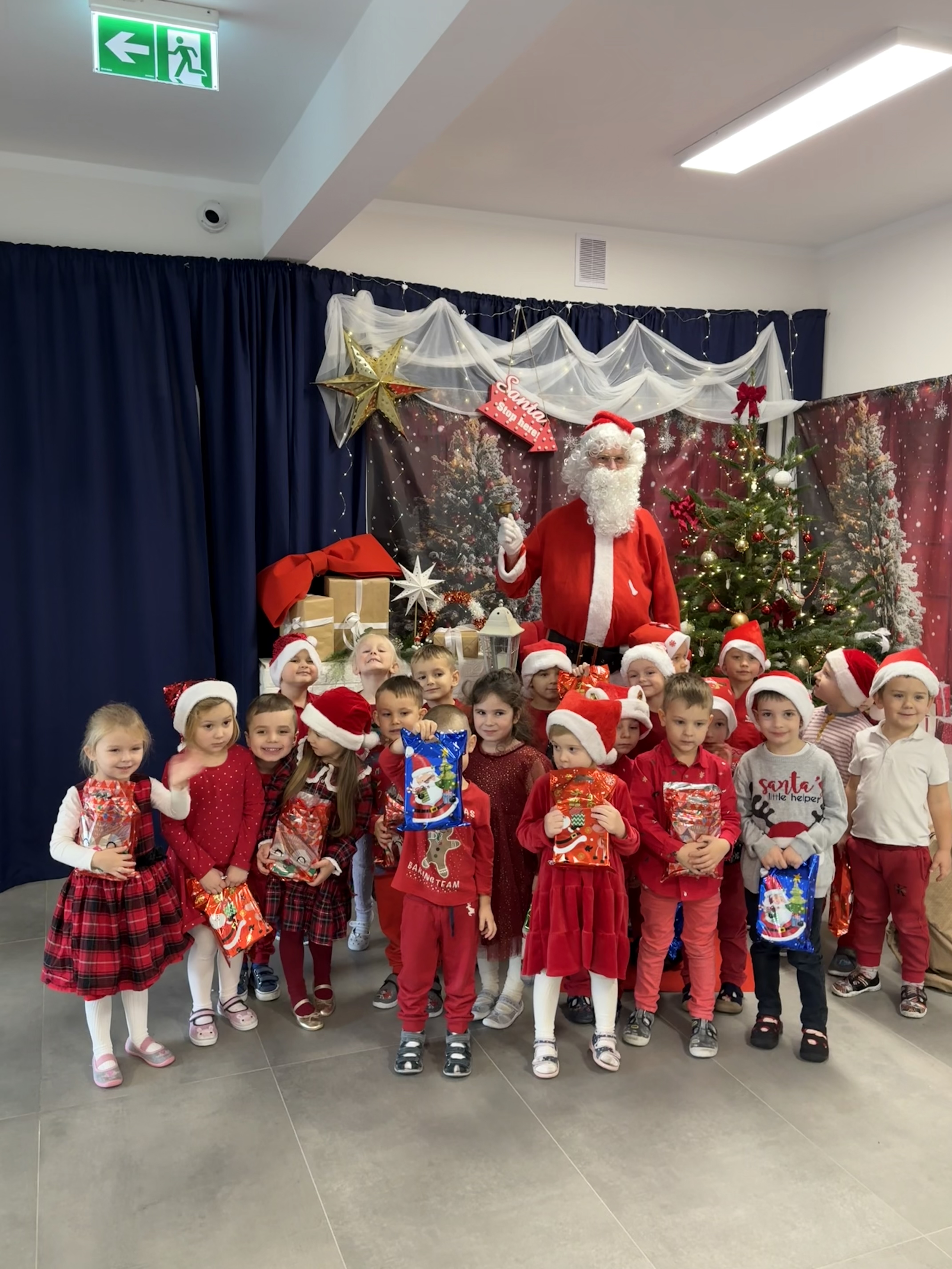 — Ho, ho, ho! Czy są tu grzeczne dzieci? — zapytał wesoło. Każda grupa przygotowała krótkie występy: jedni recytowali wierszyki, inni śpiewali świąteczne piosenki. Po występach przyszedł czas na prezenty. Mikołaj wyjmował z worka kolorowe paczuszki, a dzieci podchodziły jedno po drugim, czasem z szerokim uśmiechem, czasem trochę nieśmiało. Dziękujemy Święty Mikołaju!!!