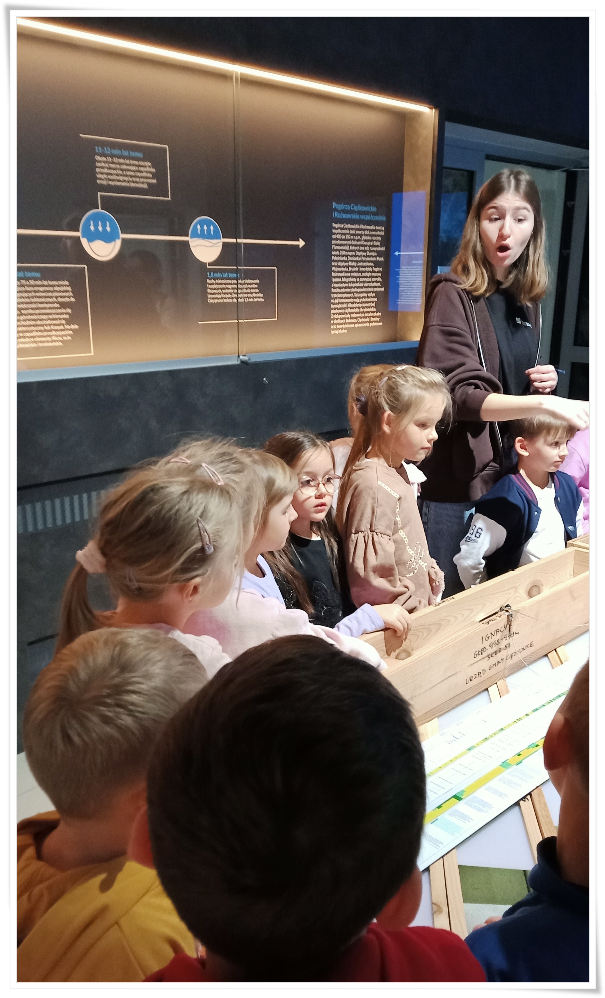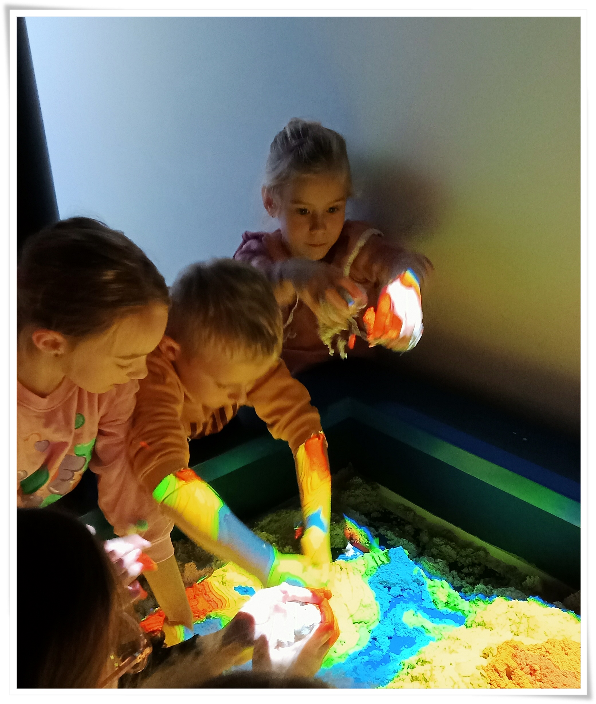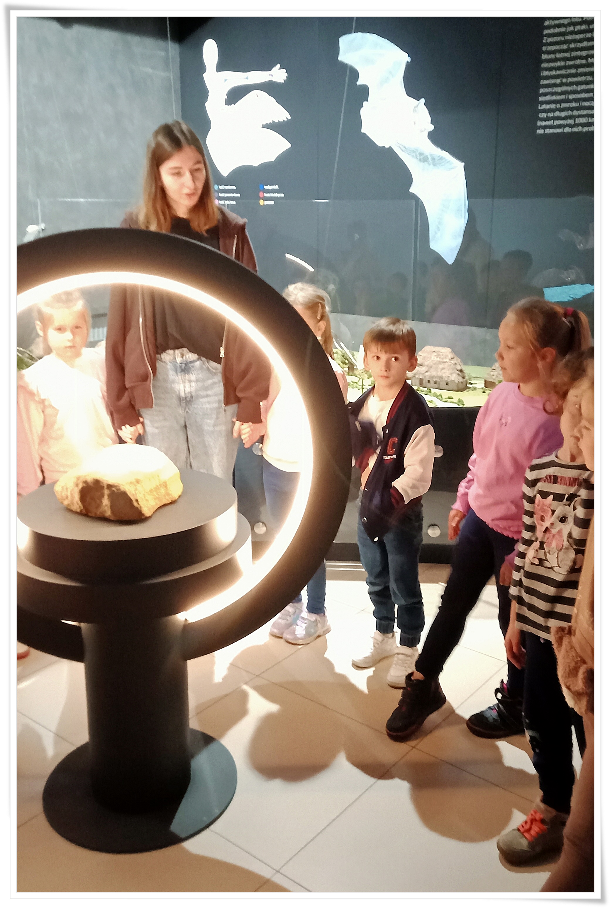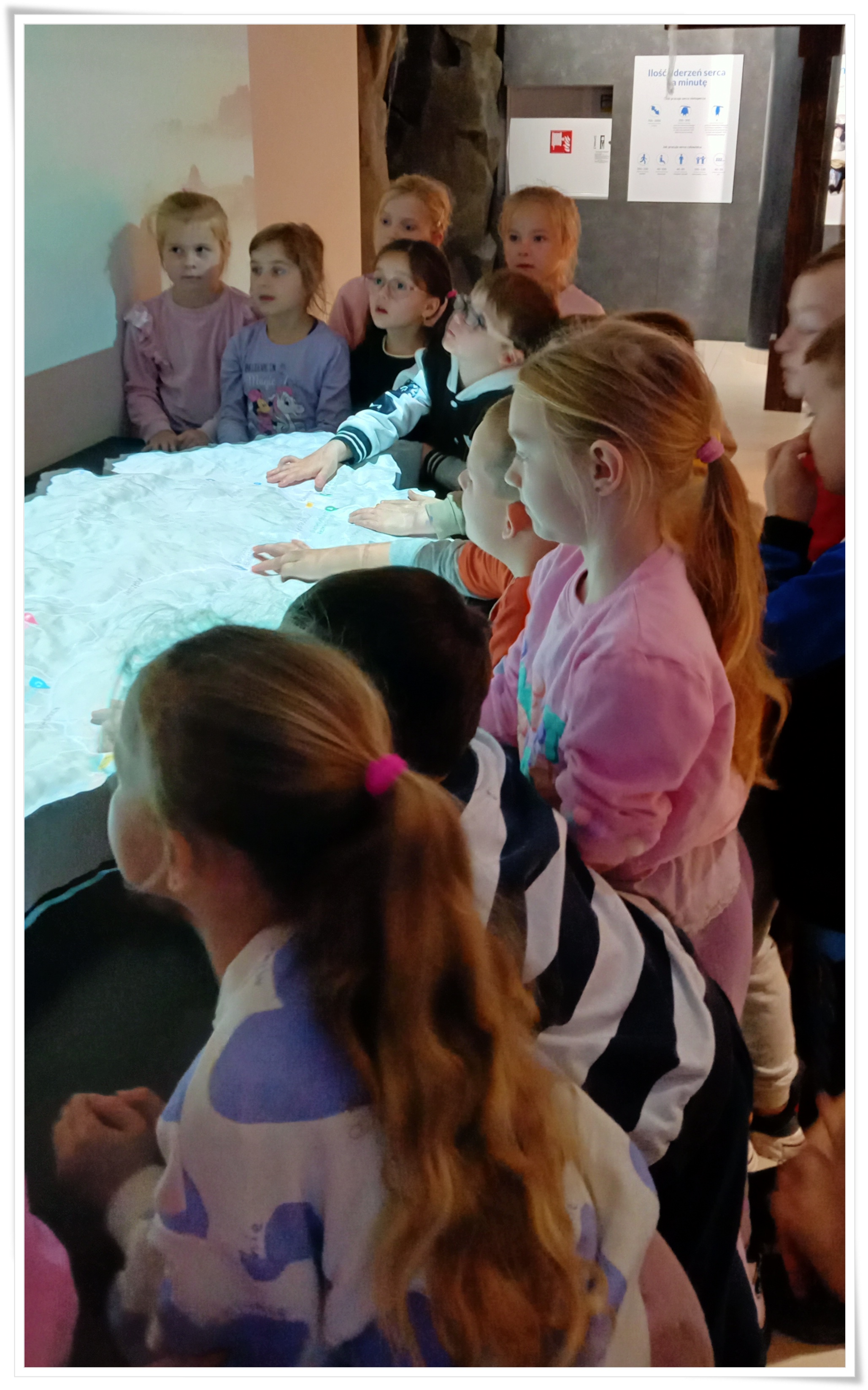 22 października dzieci z grupy „Słoneczka” wraz z grupą „Stokrotki” wyruszyły na przyrodniczą wycieczkę do Małopolskiego Centrum Edukacji Ekologicznej w Ciężkowicach. Odwiedziliśmy interaktywną wystawę „ZIEMIA – WODA - POWIETRZE”, która w nowoczesny i przystępny sposób przybliża zagadnienia związane z funkcjonowaniem przyrody i ochroną środowiska. W części z Ziemią zobaczyliśmy skały wydobyte z 1000 m spod ziemi, posłuchaliśmy bicia serca nietoperza oraz dzieci dowiedziały się na czym polega echolokacja. W sali z Powietrzem mogliśmy zobaczyć chmury, wygenerować prąd za pomocą siły naszych płuc, a także pomalować motyle światłem. Całość kończy Woda, gdzie mogliśmy sprawdzić ile wody zawierają w sobie nasze ulubione produkty, budować z piasku kinetycznego oraz m.in. wywołać powódź za pomocą specjalnego symulatora.