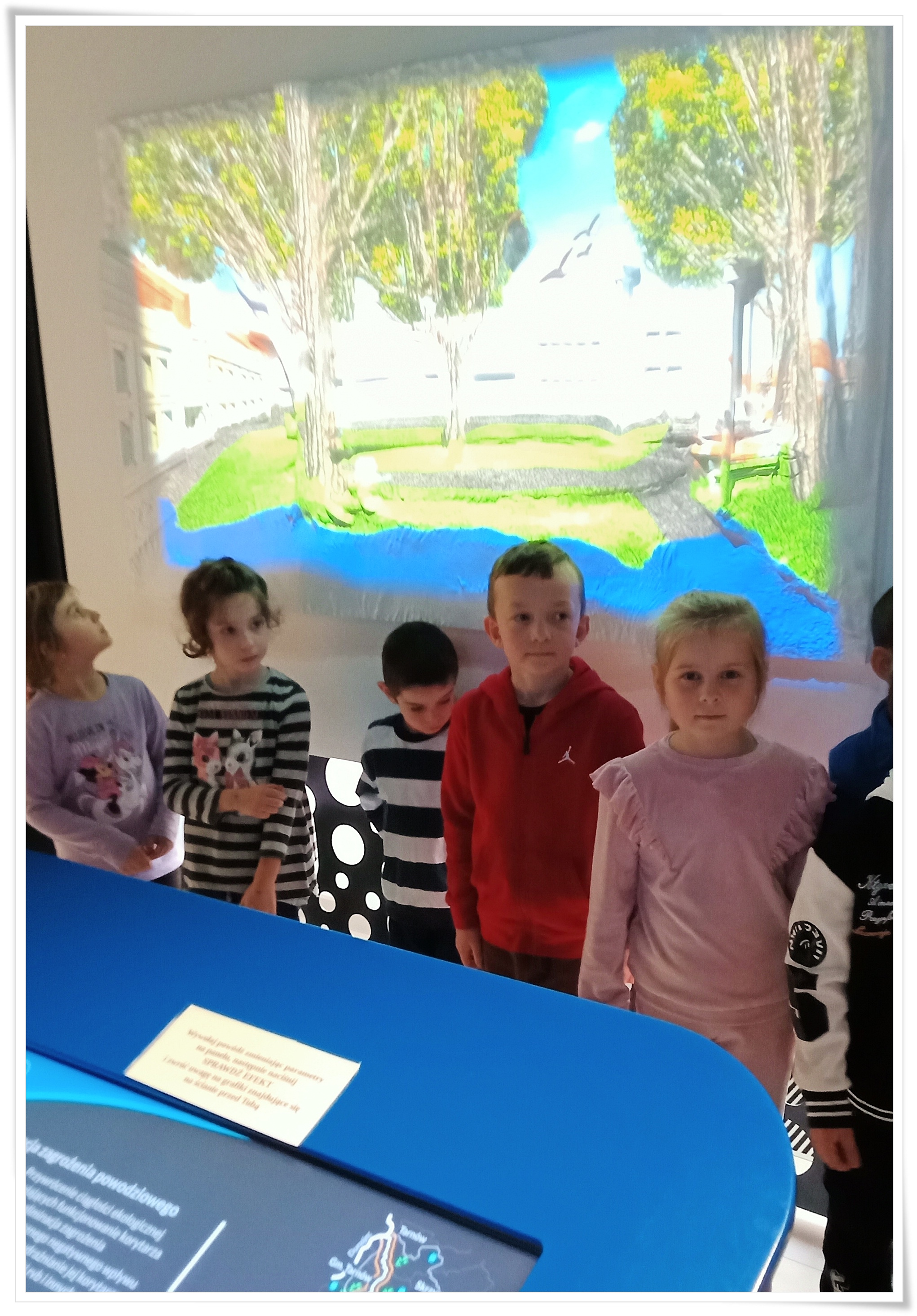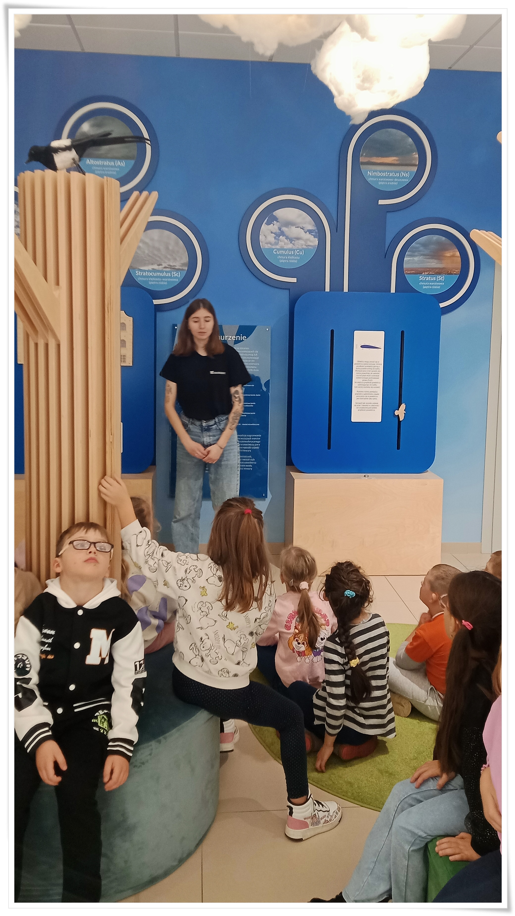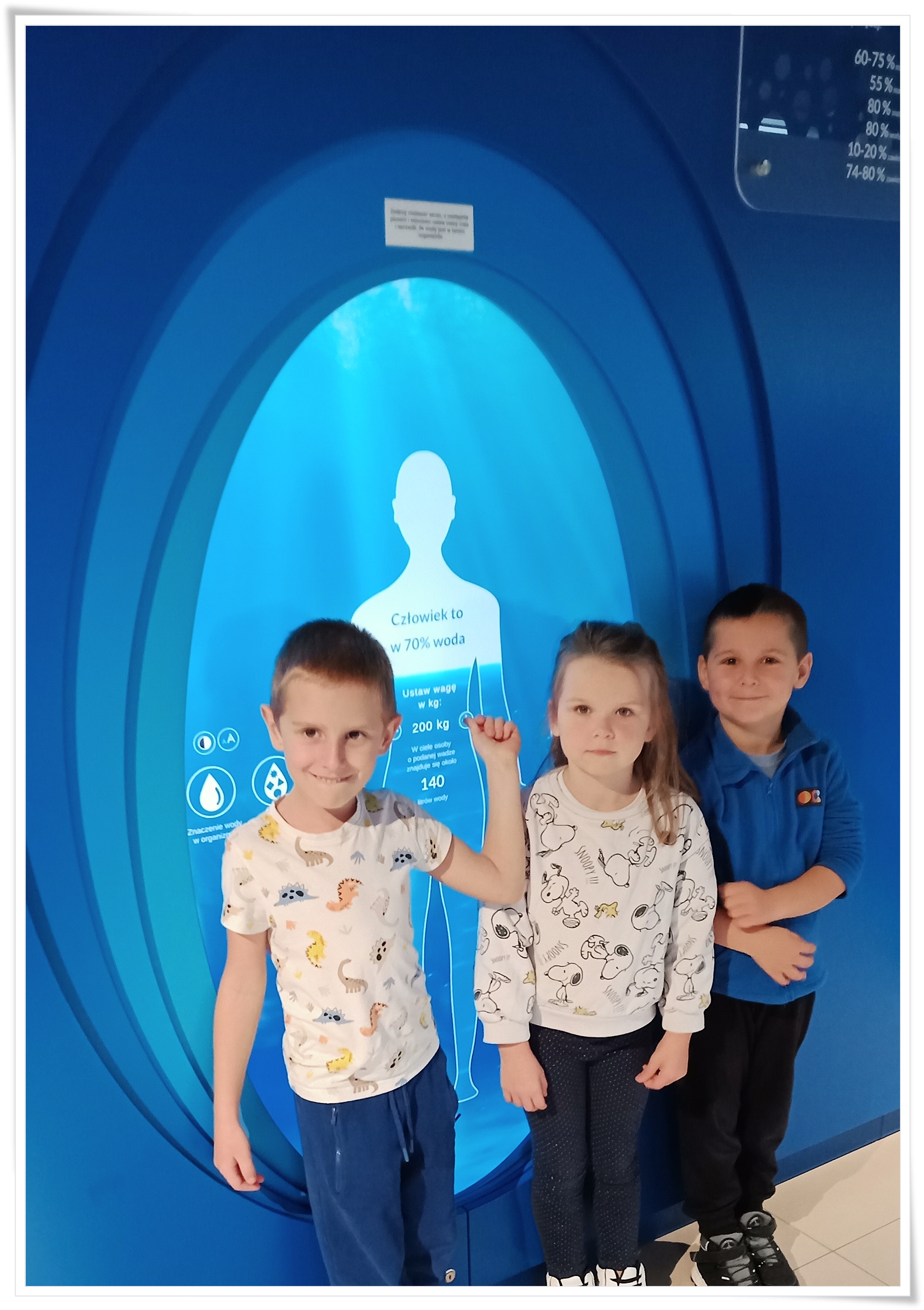 Po wystawie udaliśmy się na edukacyjny film o tematyce ekologicznej pt. „Kropelka wody”. Film opowiada o cyklu obiegu wody w przyrodzie, pokazując wędrówkę małej kropelki przez różne stany skupienia (para, lód, ciecz) i miejsca na Ziemi, takie jak oceany, rzeki, lodowce czy pustynie. W przystępny i zabawny sposób wyjaśnia dzieciom zjawiska przyrodnicze, takie jak powstawanie deszczu, chmur, śniegu czy lodu.