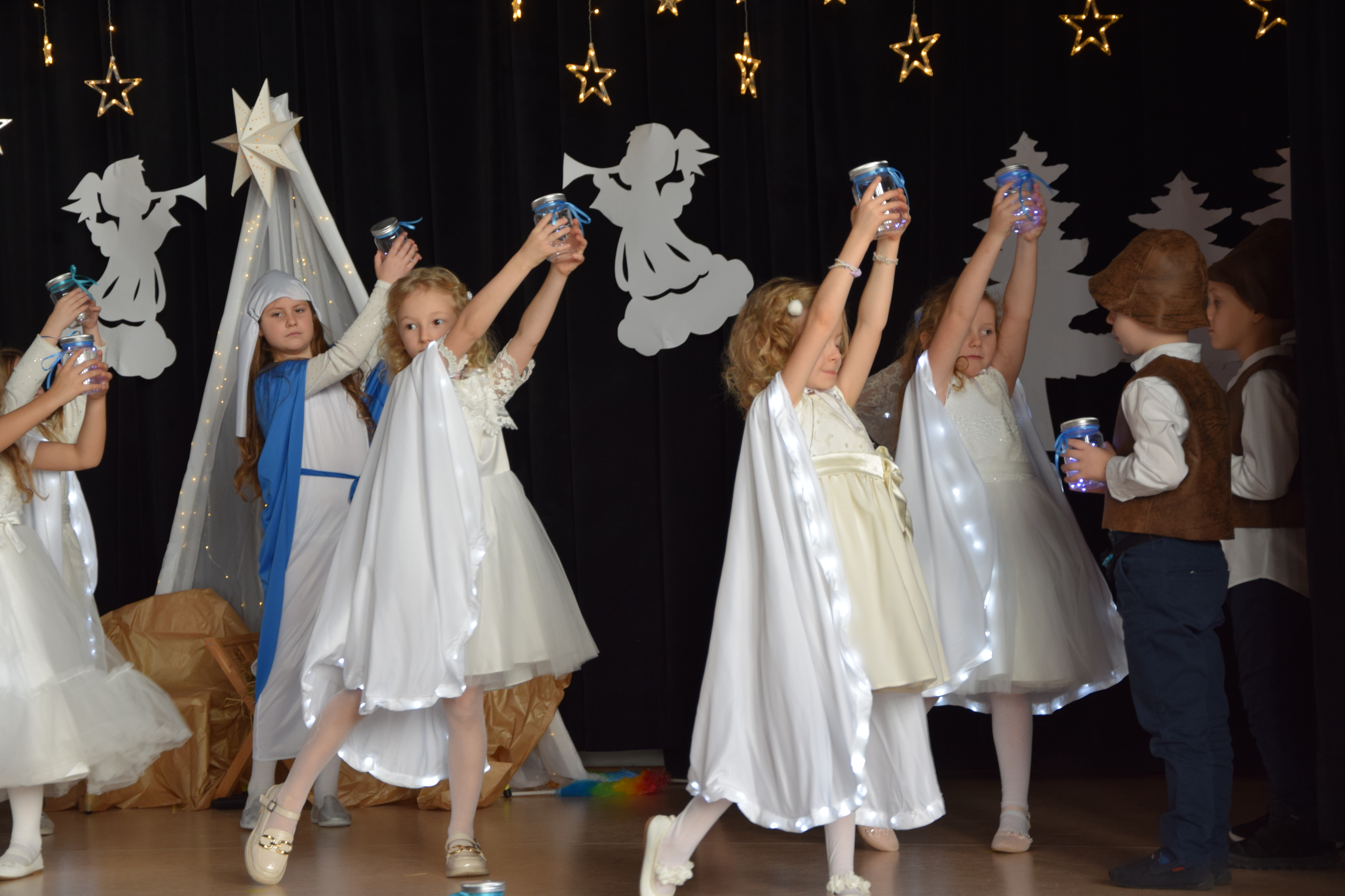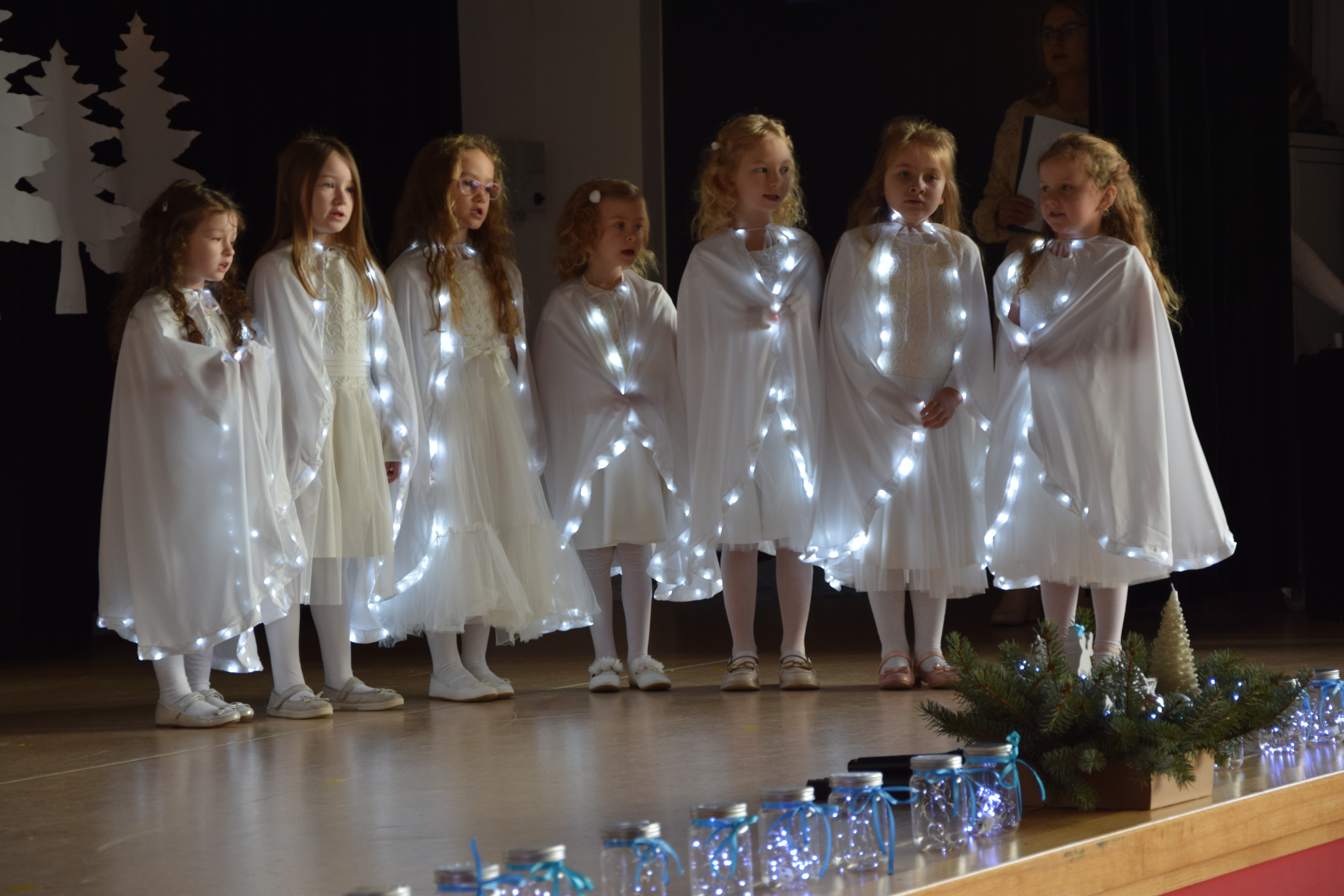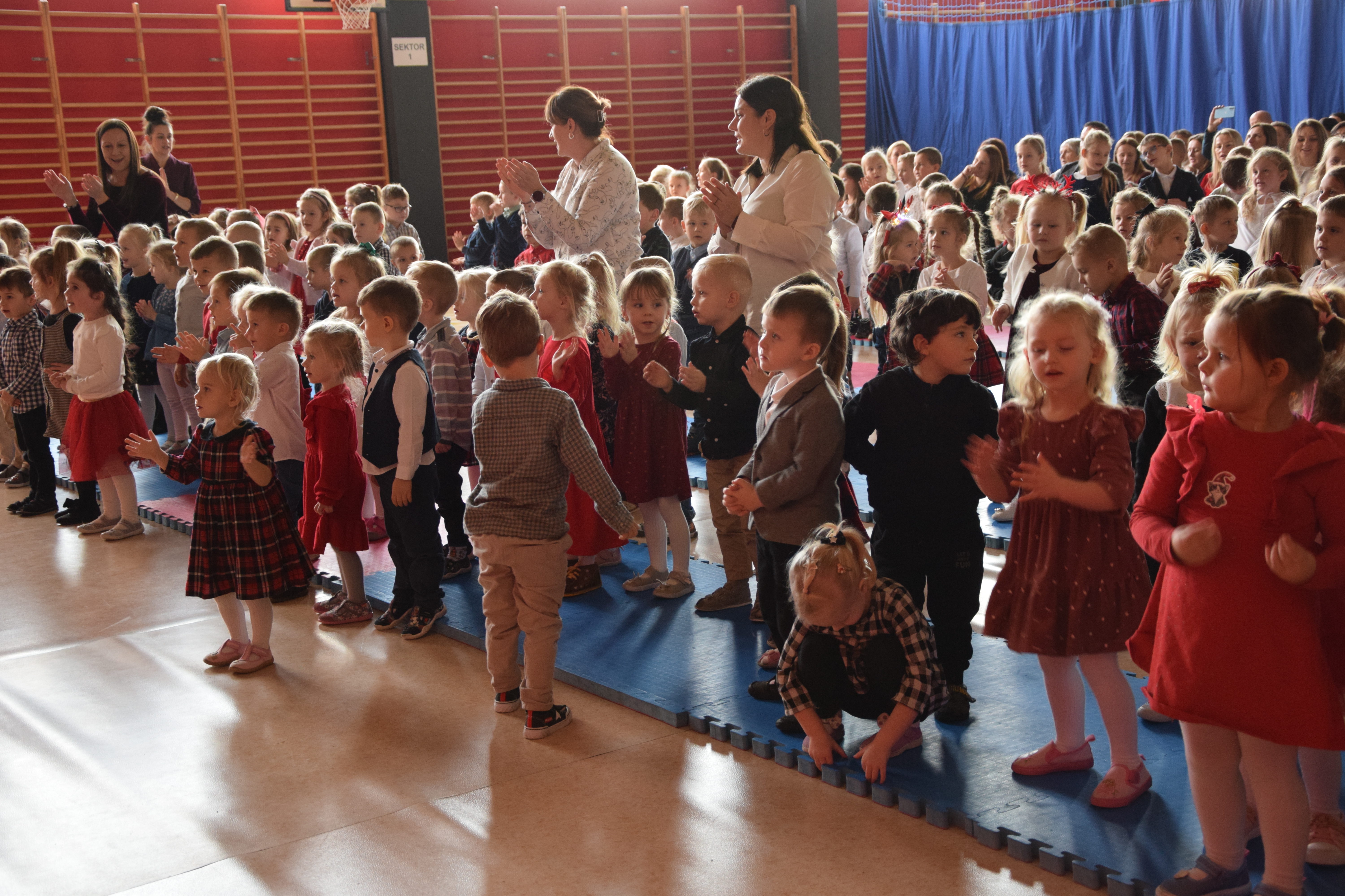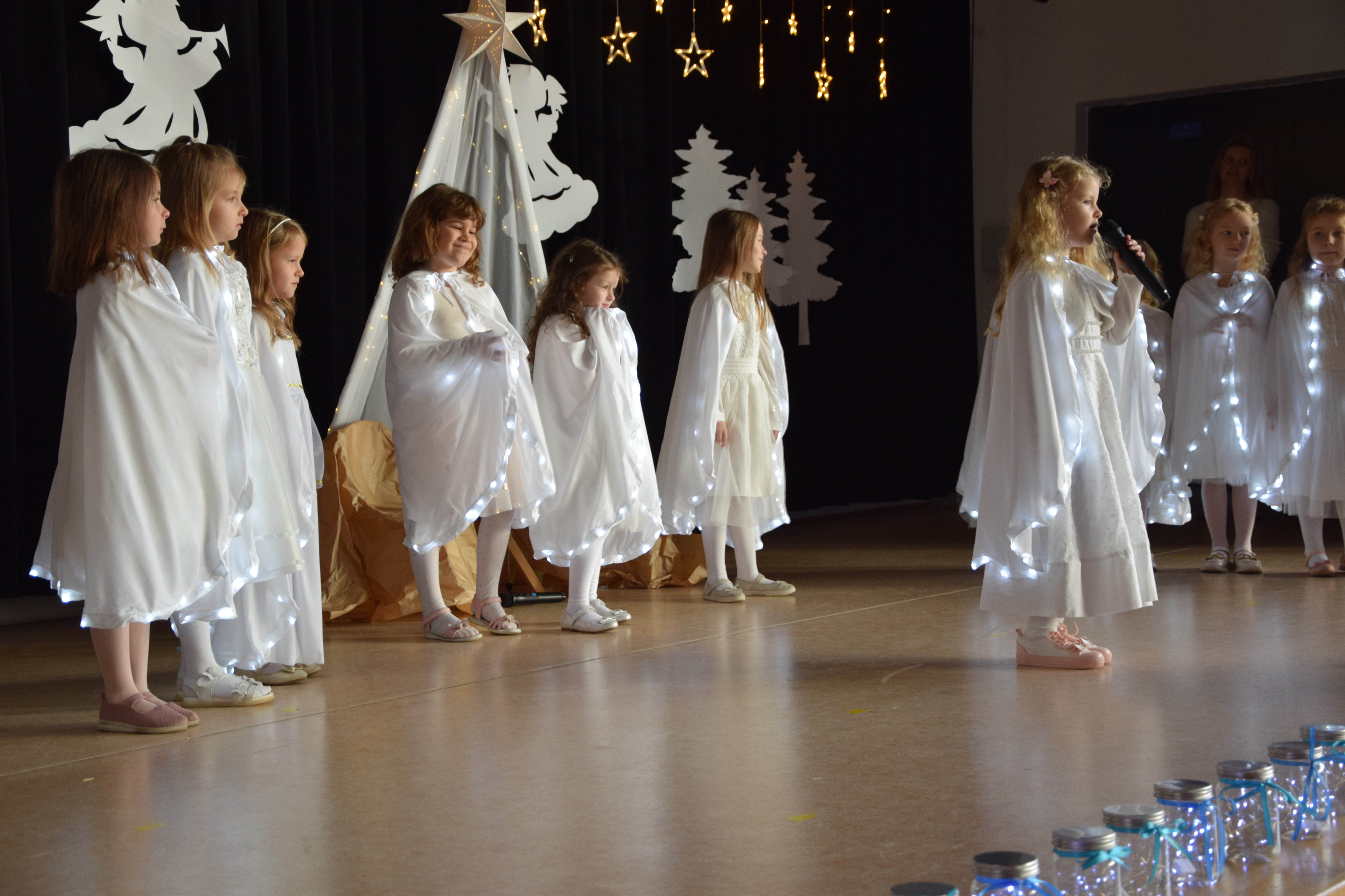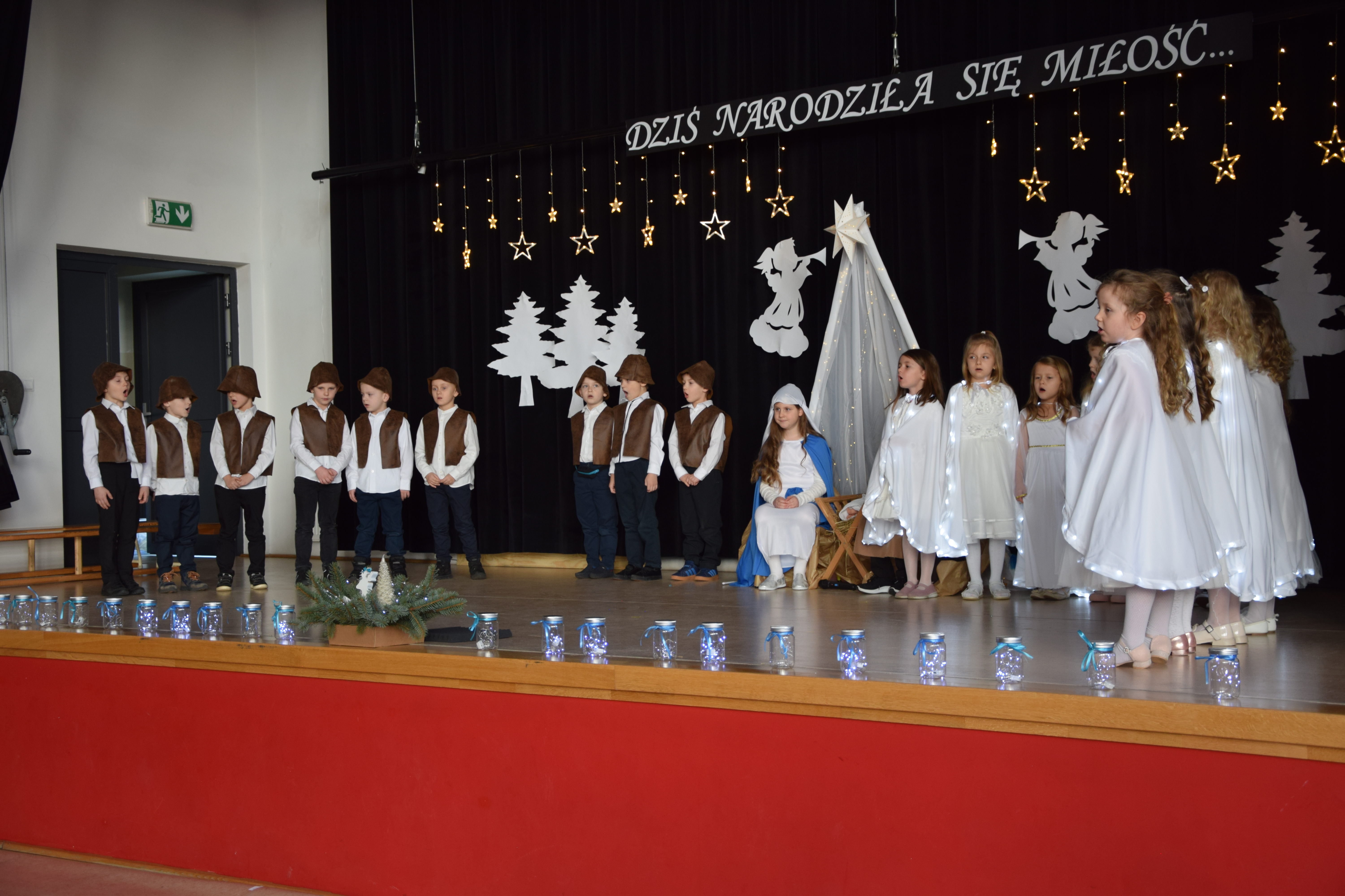 19 grudnia 2025 r. na Hali Sportowej im. Agaty Mróz-Olszewskiej dzieci z grupy "Stokrotki" zaprezentowały przedstawienie Wigilijne, które miało na celu wprowdzenie wszystkich zgromadzonych w pełen ciepła i życzliwości świąteczny nastrój. Nasi mali artyści włożyli mnóstwo pracy, by uczynić ten dzień wyjątkowym. Bezpośrednio po zakończeniu części artystycznej na scenie zagościł zespół Brzosty. Wraz z dziećmi oraz zaproszonymi gośćmi przystąpiliśmy do śpiewu znanych kolęd i pastorałek.