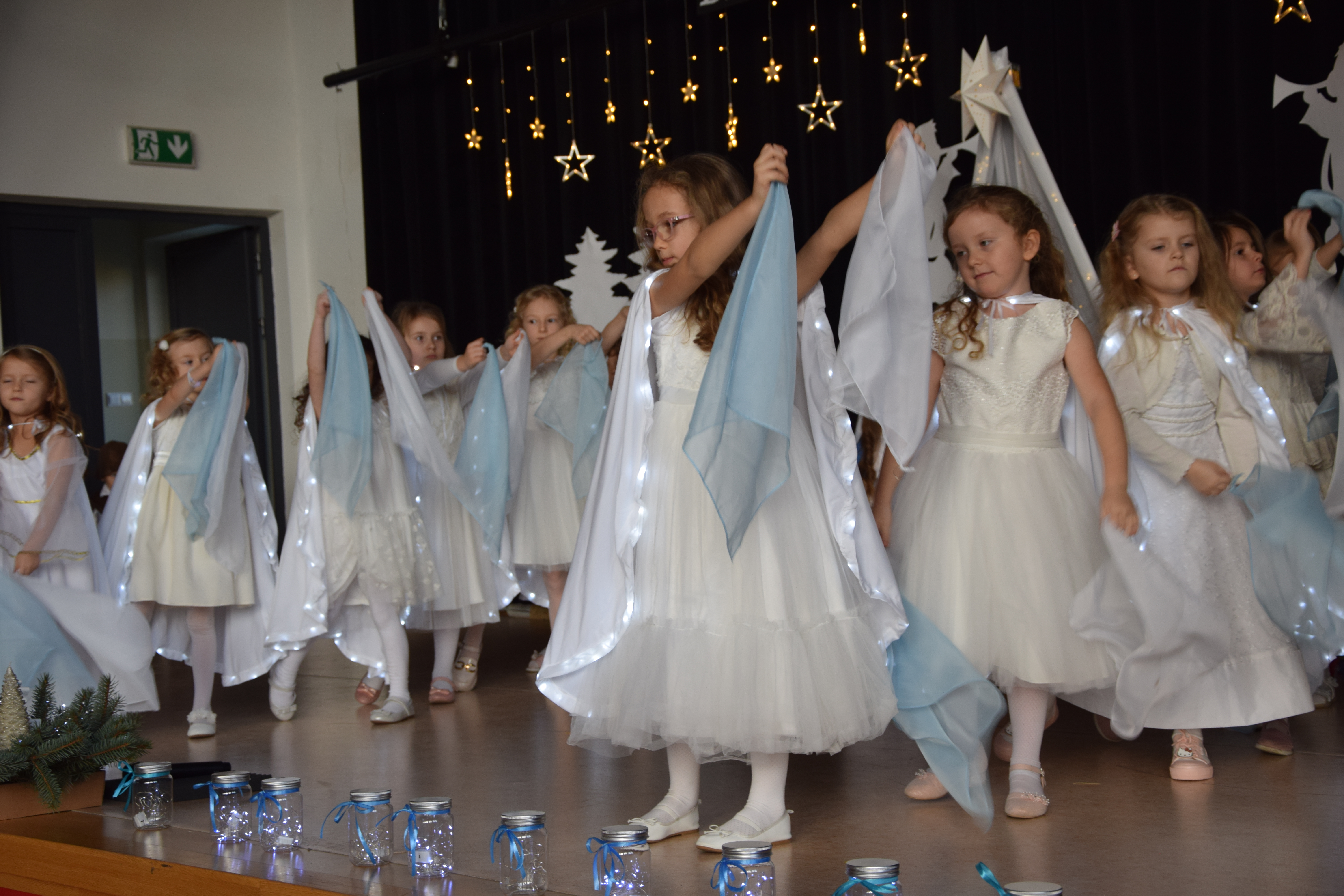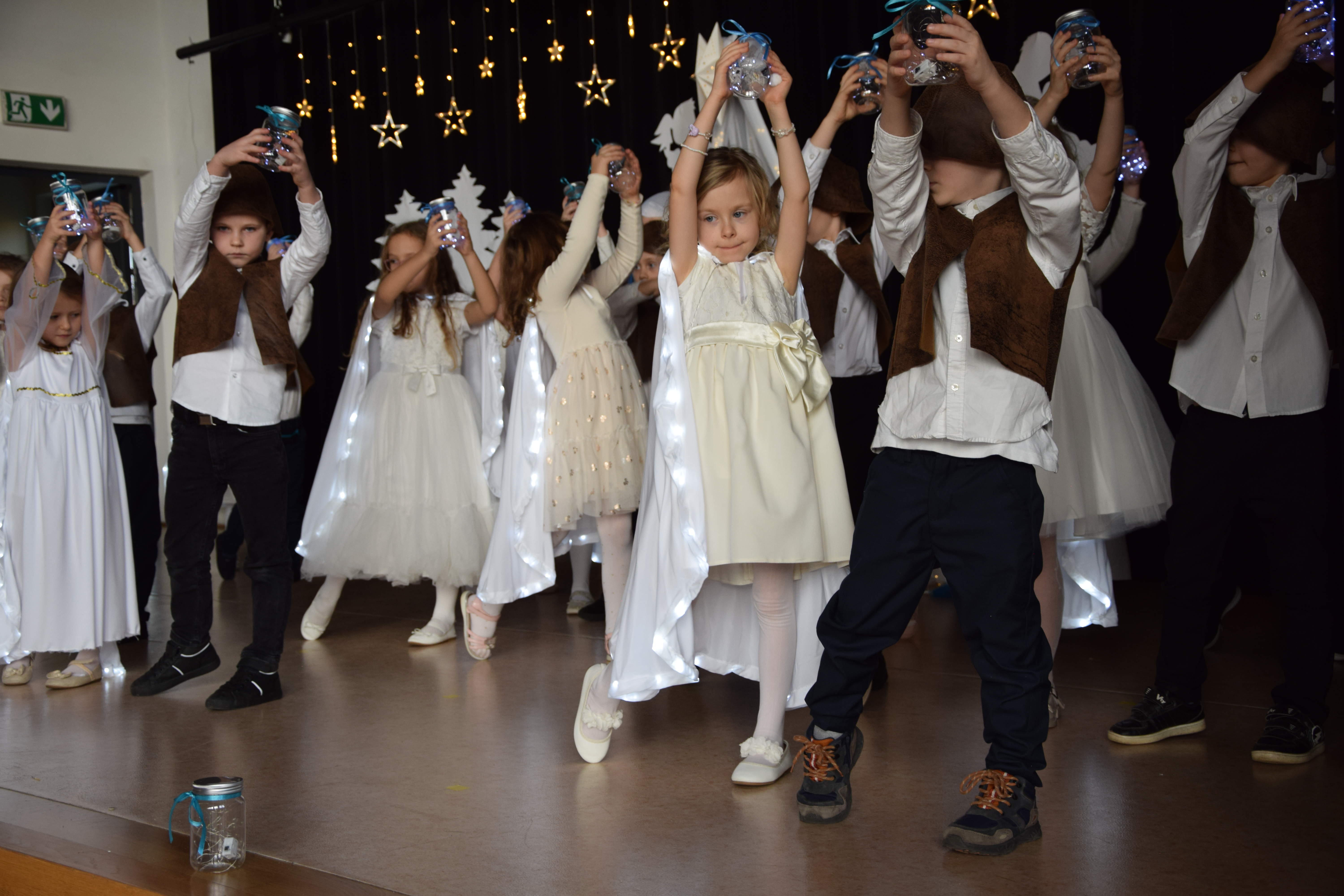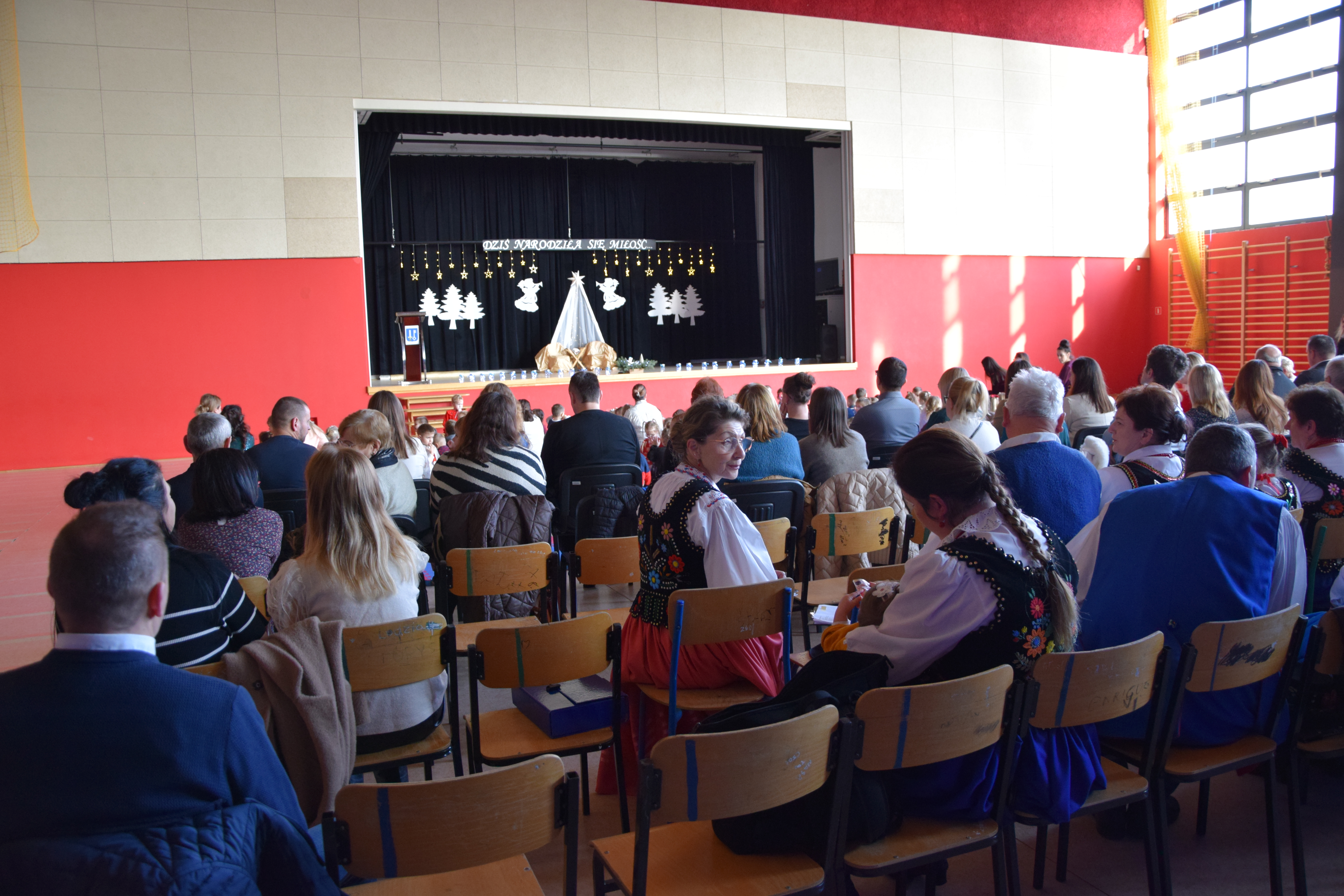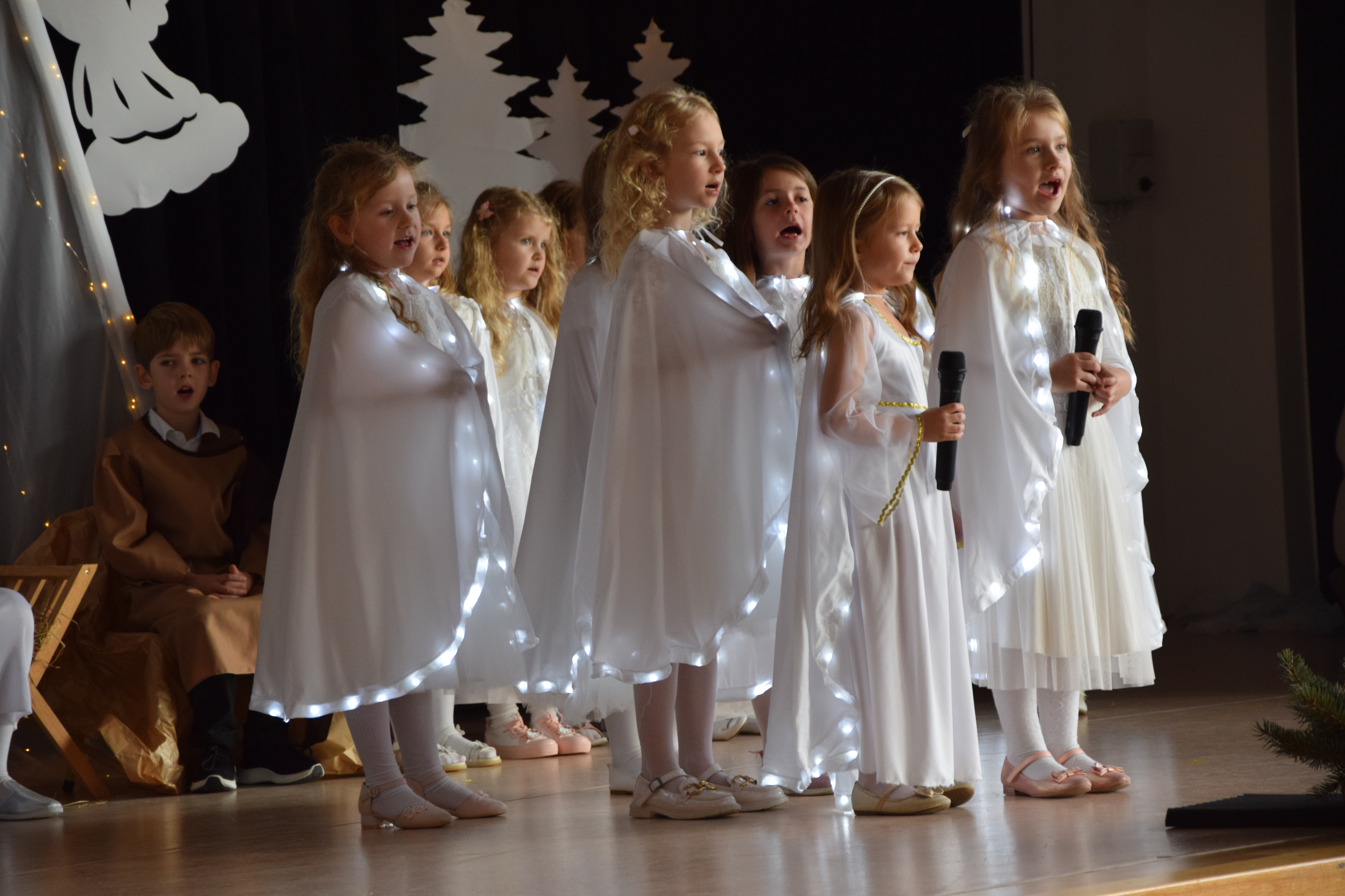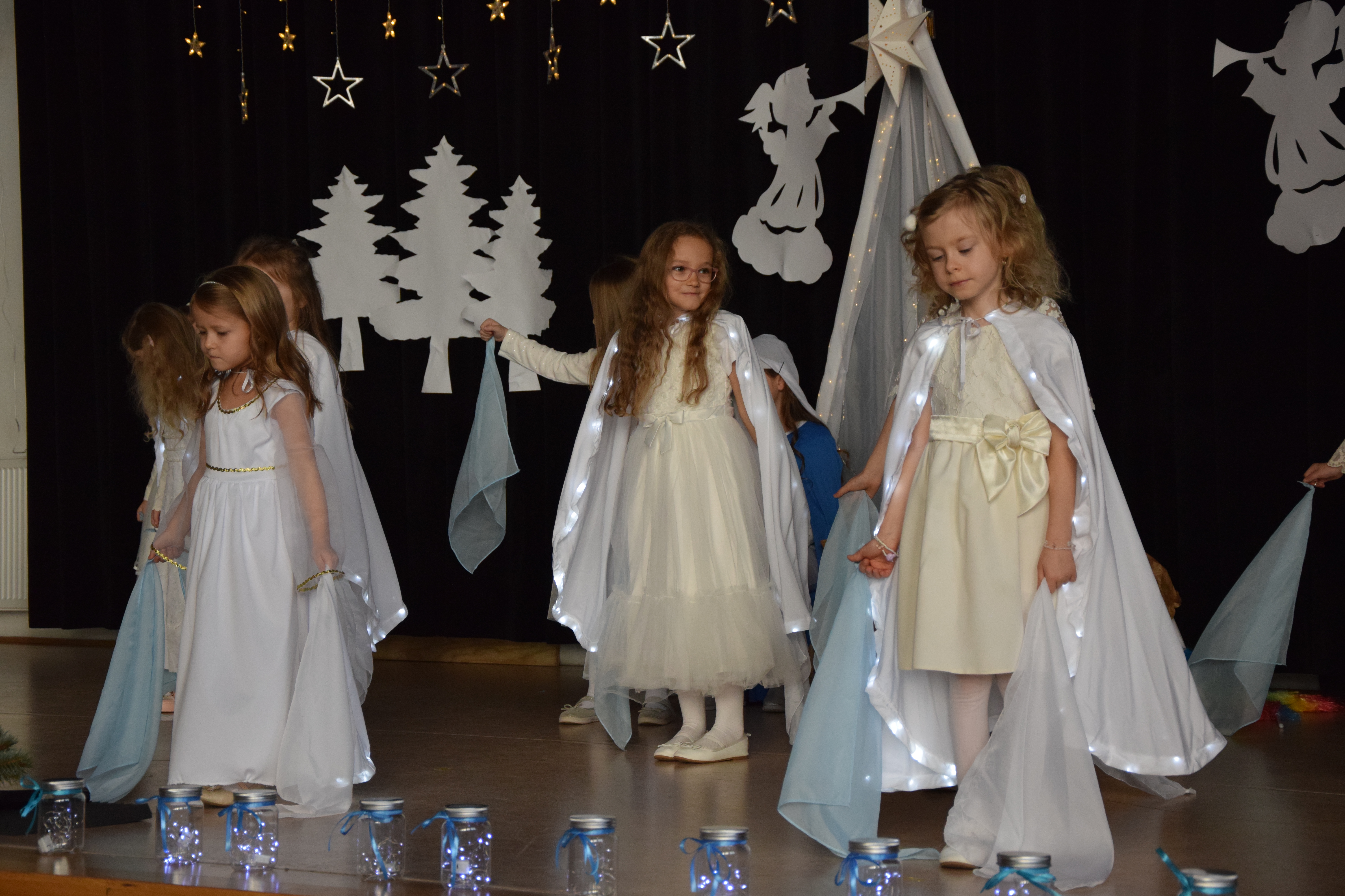 19 grudnia 2025 r. na Hali Sportowej im. Agaty Mróz-Olszewskiej dzieci z grupy "Stokrotki" zaprezentowały przedstawienie Wigilijne, które miało na celu wprowdzenie wszystkich zgromadzonych w pełen ciepła i życzliwości świąteczny nastrój. Nasi mali artyści włożyli mnóstwo pracy, by uczynić ten dzień wyjątkowym. Bezpośrednio po zakończeniu części artystycznej na scenie zagościł zespół Brzosty. Wraz z dziećmi oraz zaproszonymi gośćmi przystąpiliśmy do śpiewu znanych kolęd i pastorałek.
