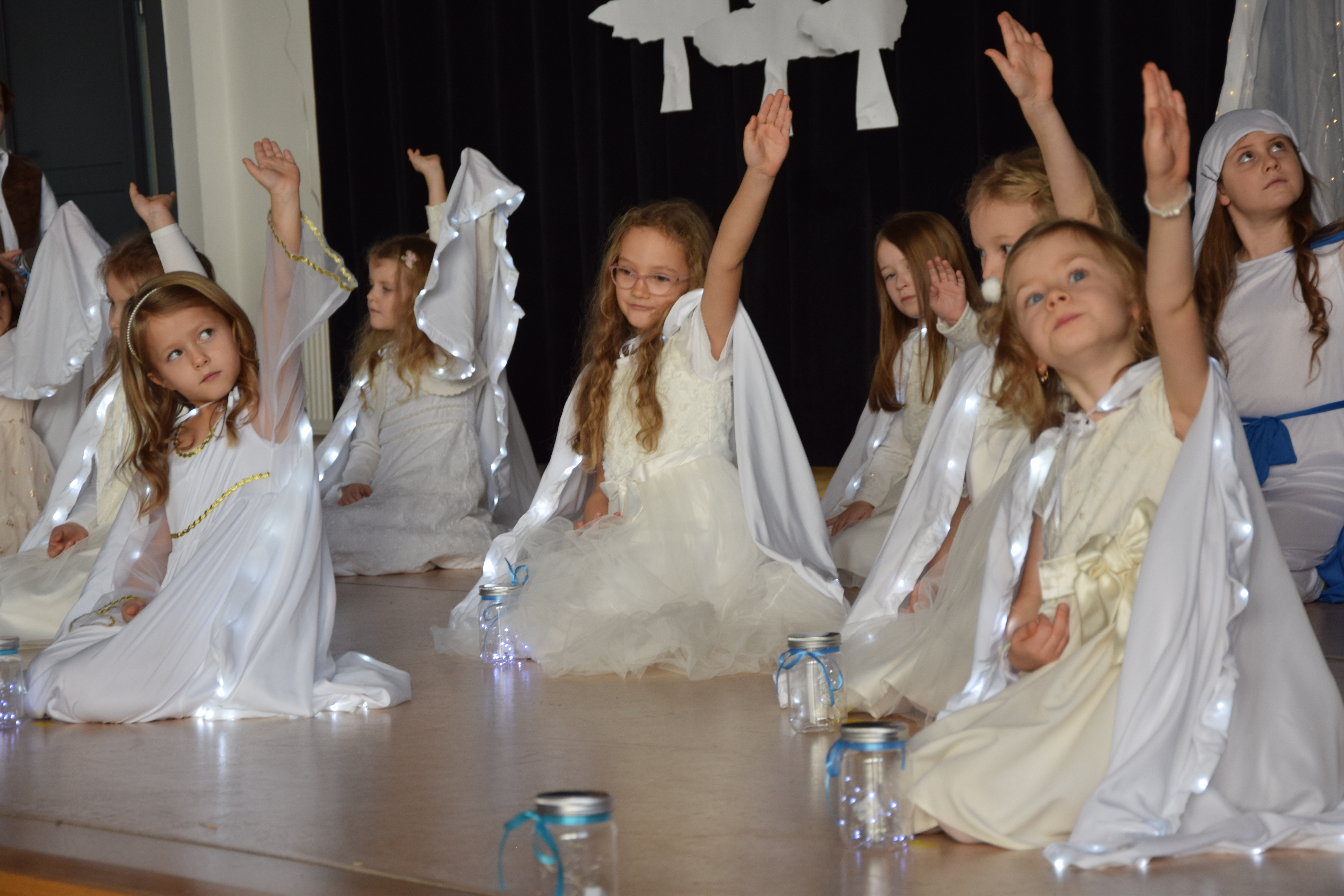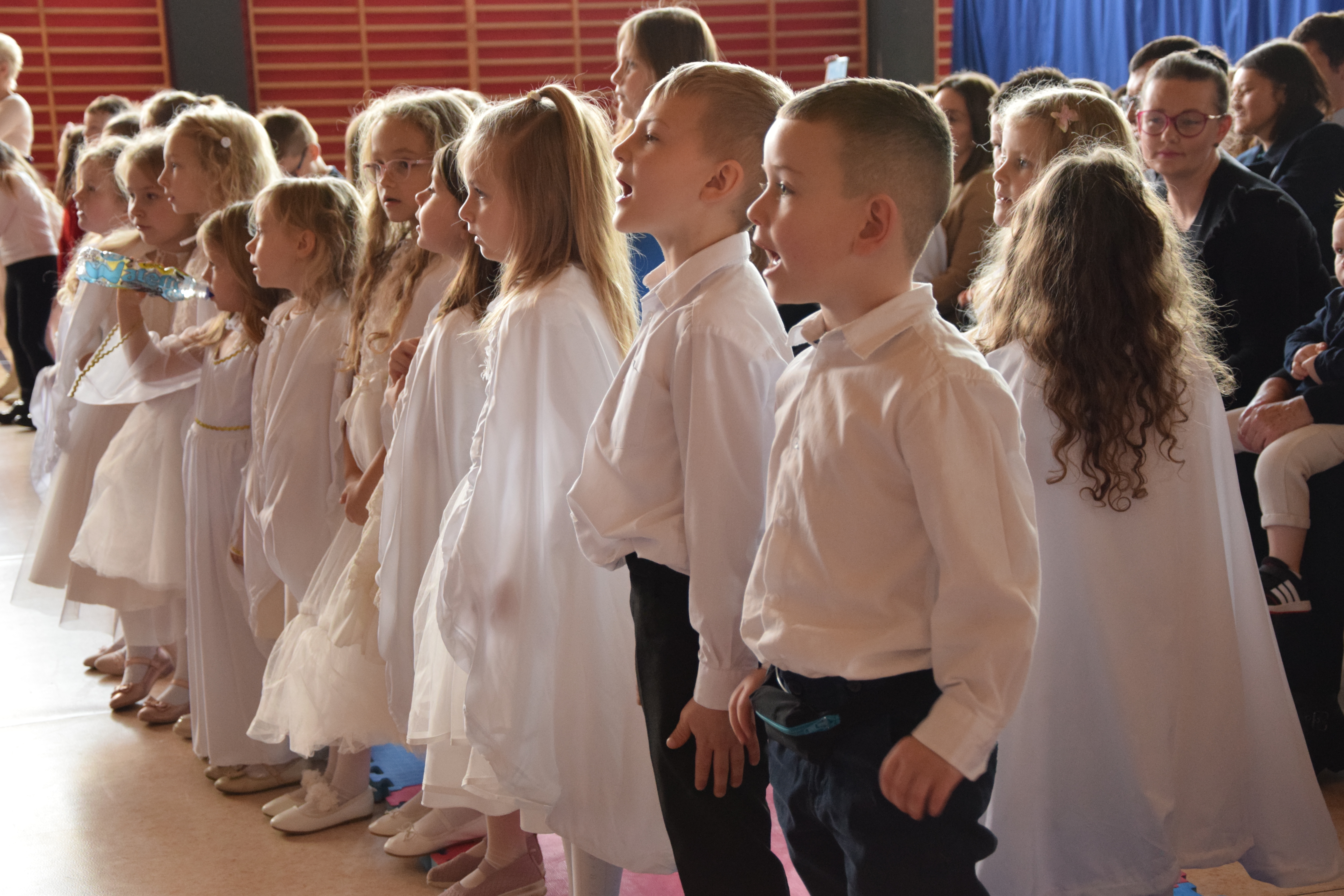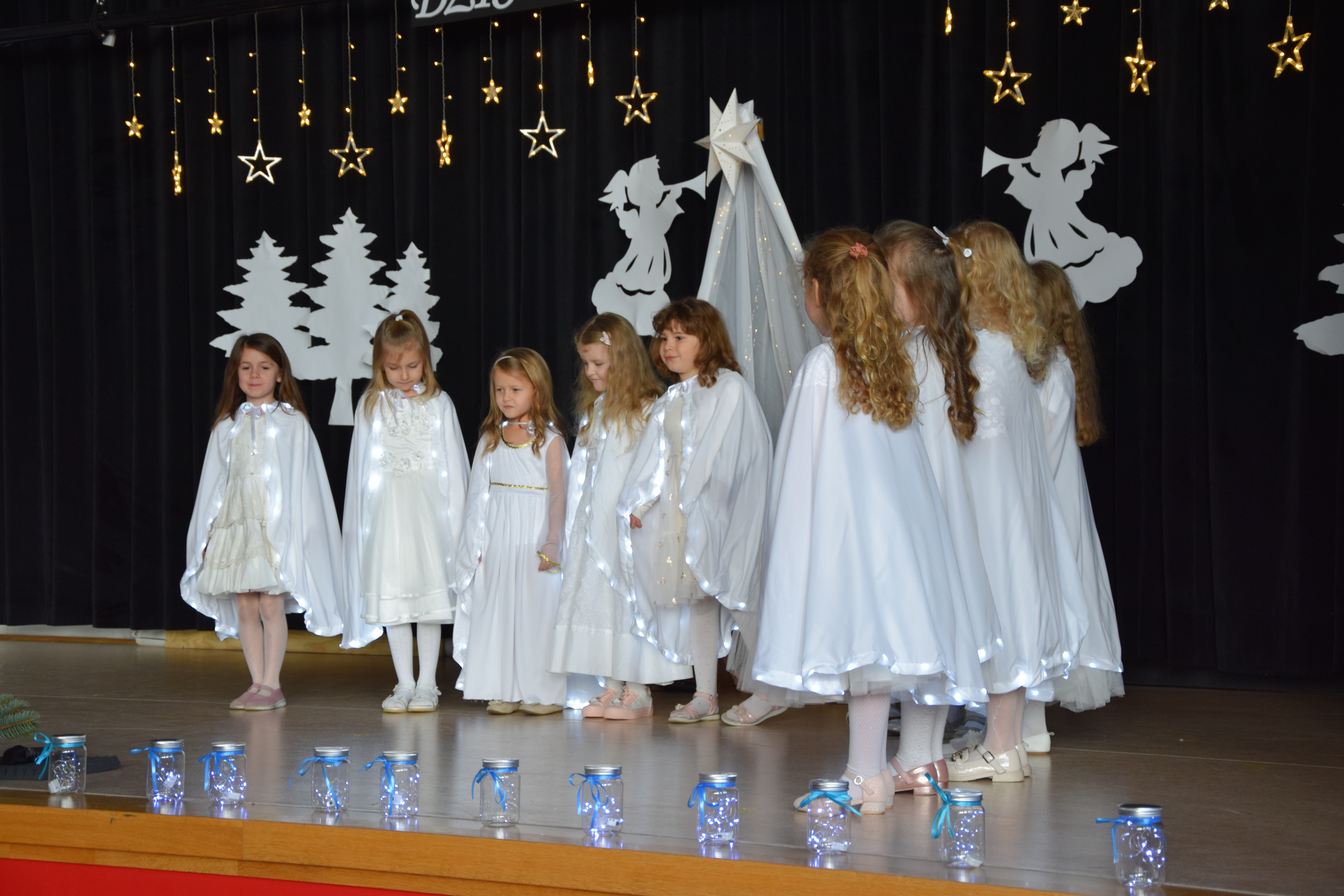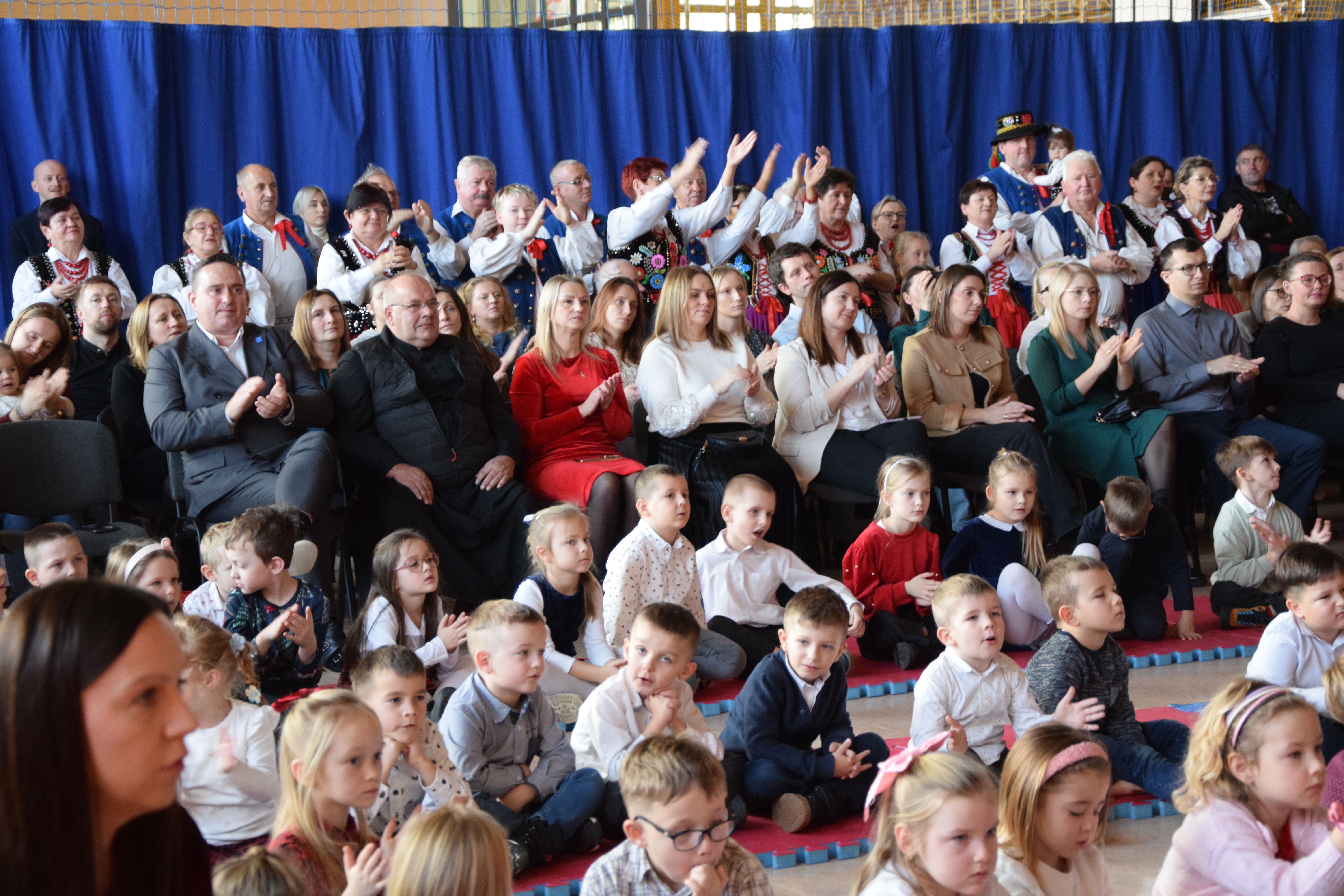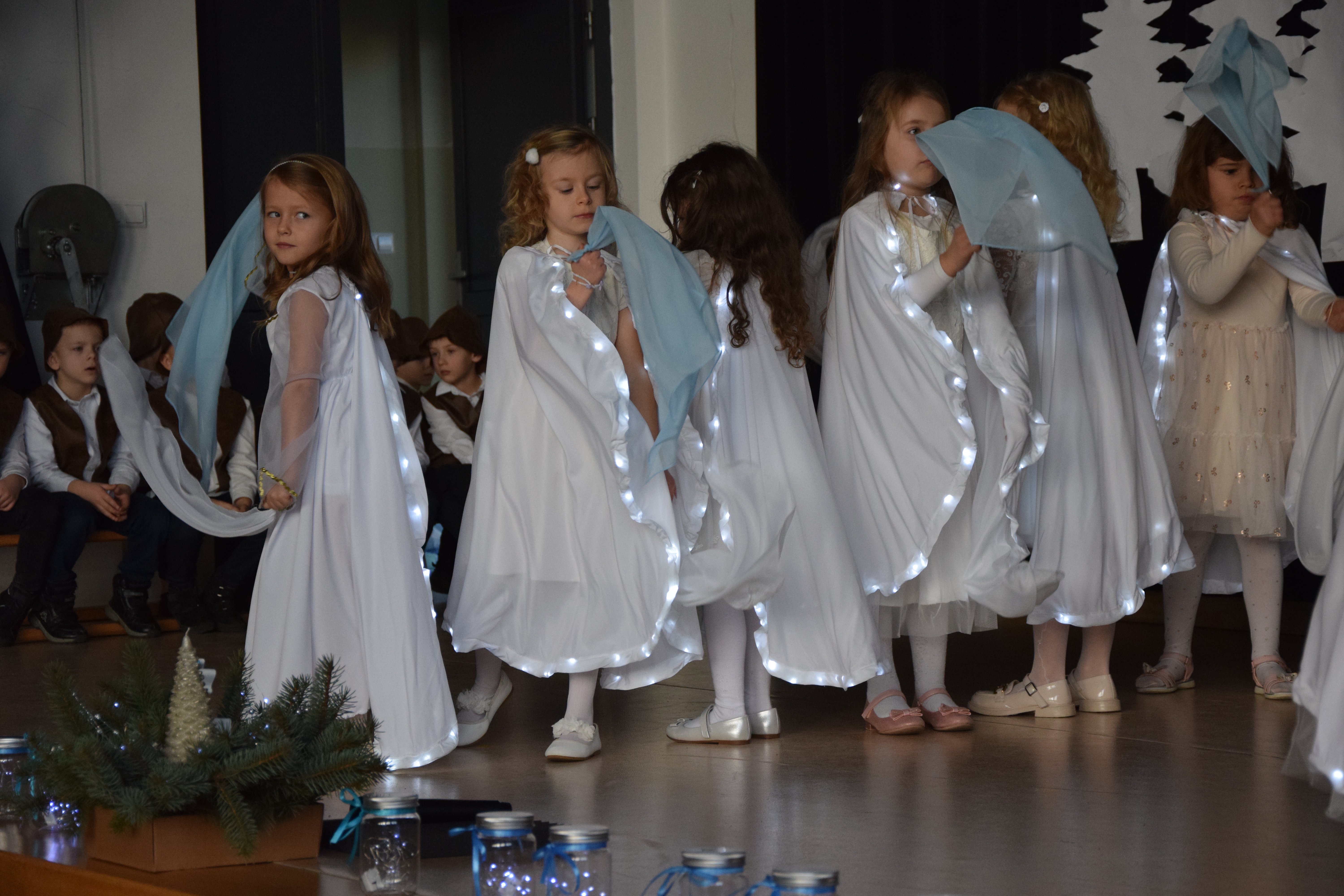 19 grudnia 2025 r. na Hali Sportowej im. Agaty Mróz-Olszewskiej dzieci z grupy "Stokrotki" zaprezentowały przedstawienie Wigilijne, które miało na celu wprowdzenie wszystkich zgromadzonych w pełen ciepła i życzliwości świąteczny nastrój. Nasi mali artyści włożyli mnóstwo pracy, by uczynić ten dzień wyjątkowym. Bezpośrednio po zakończeniu części artystycznej na scenie zagościł zespół Brzosty. Wraz z dziećmi oraz zaproszonymi gośćmi przystąpiliśmy do śpiewu znanych kolęd i pastorałek.