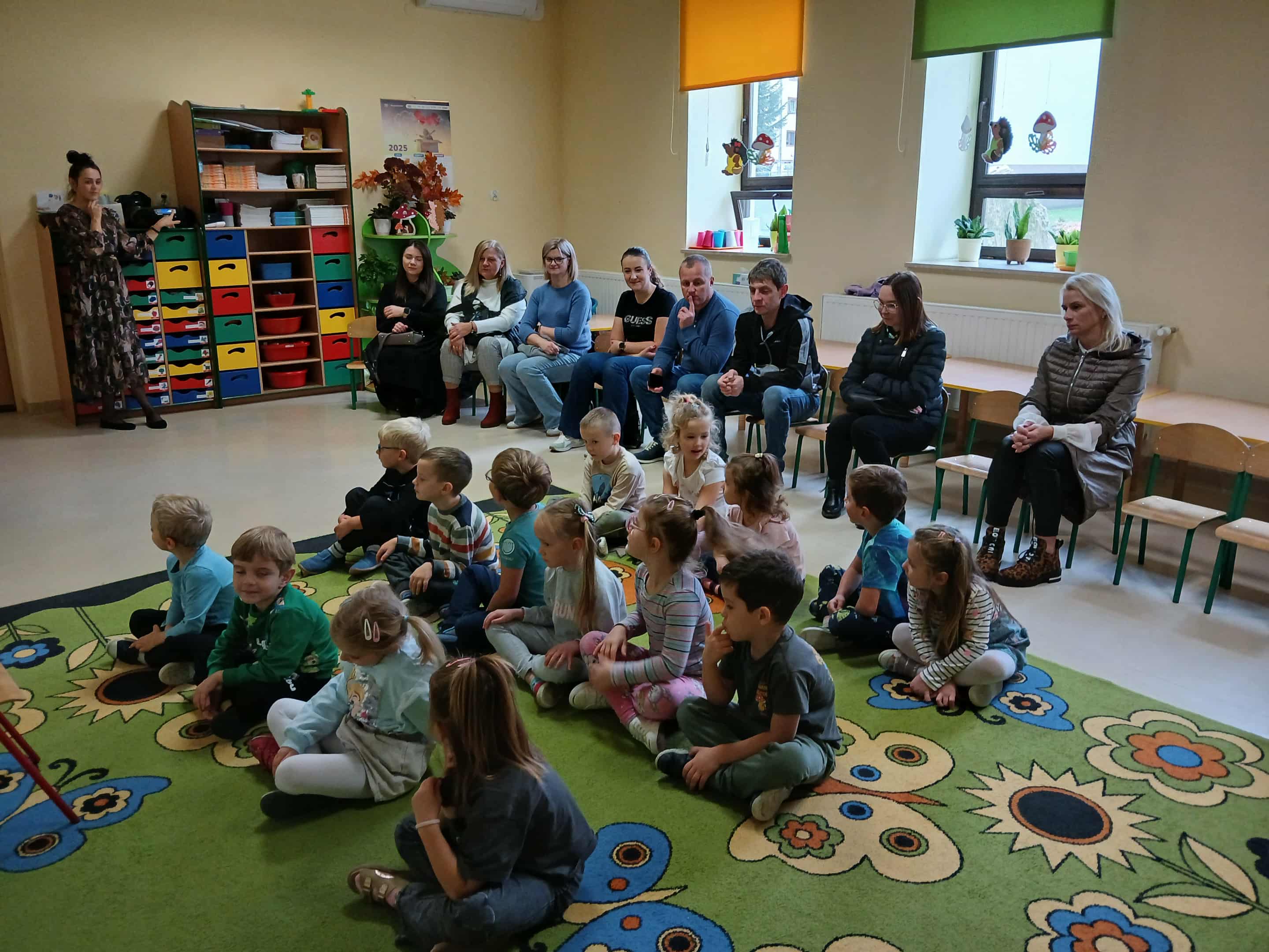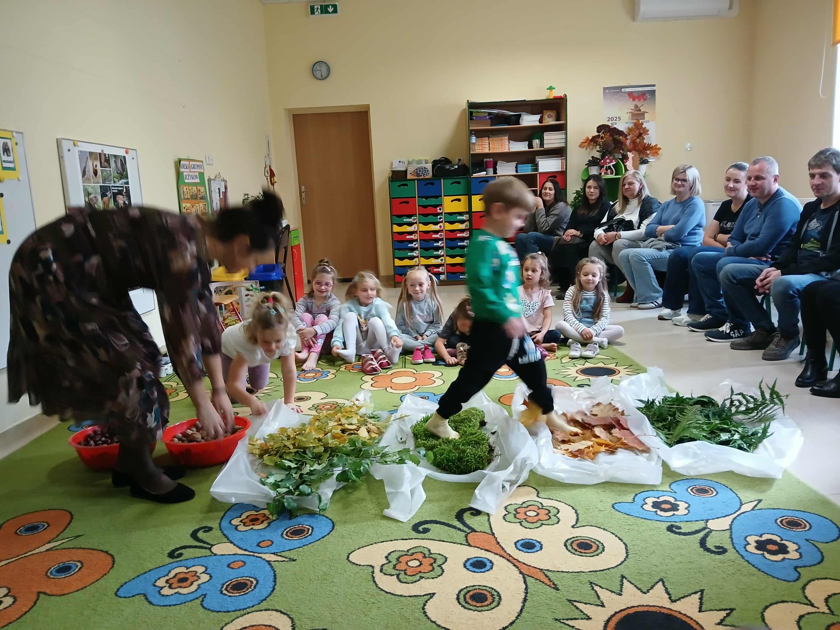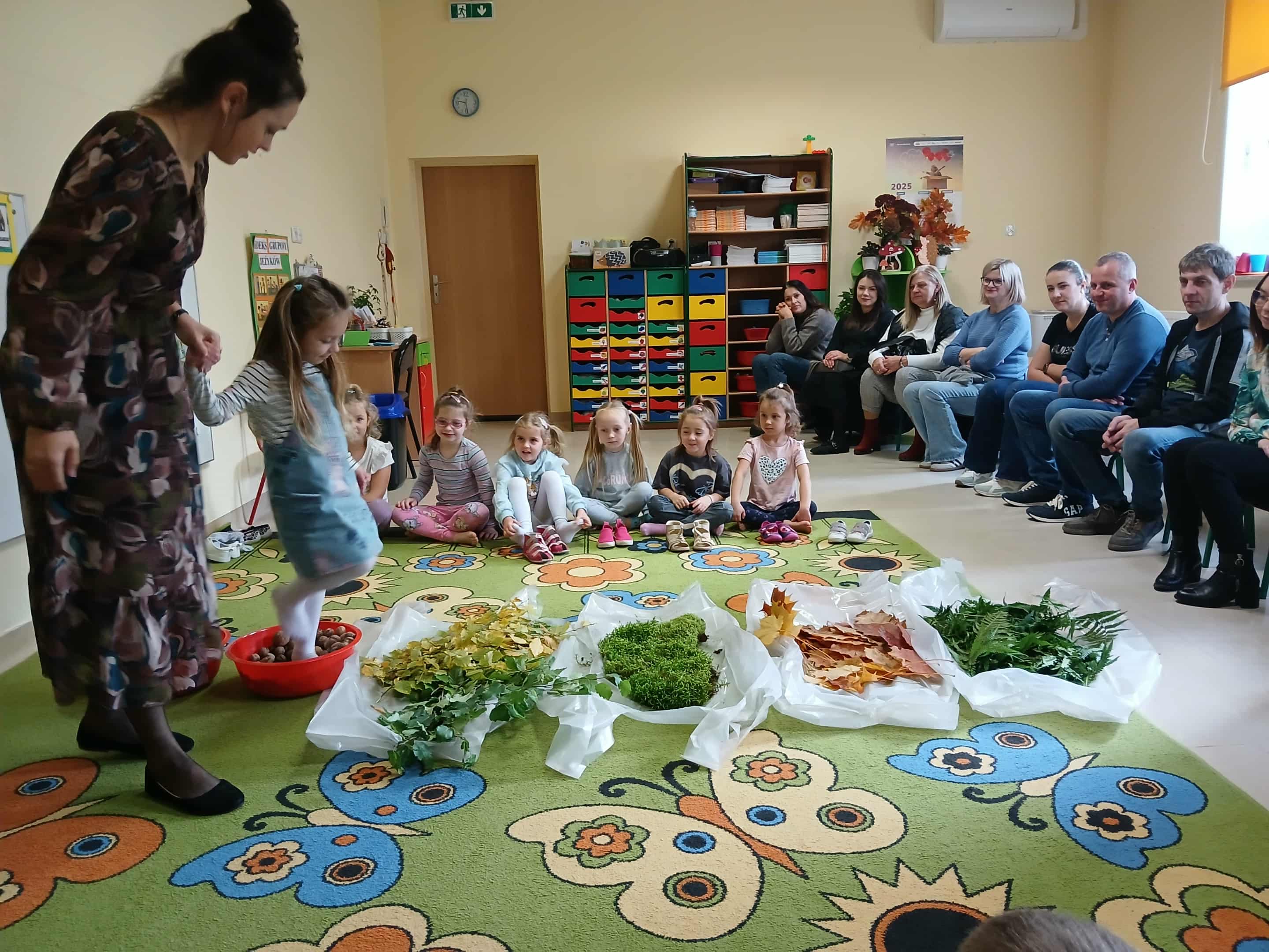 Zgodnie z tradycją przedszkola październik jest miesiącem, kiedy zapraszamy na zajęcia rodziców naszych wychowanków. Grupa 5-latków wzięła czynny udział w aktywnościach związanych z integracją sensoryczną. Temat przewodni stanowił las i jego bogactwa, zarówno fauna jak i flora. Serdecznie dziękujemy Państwu za przybycie.