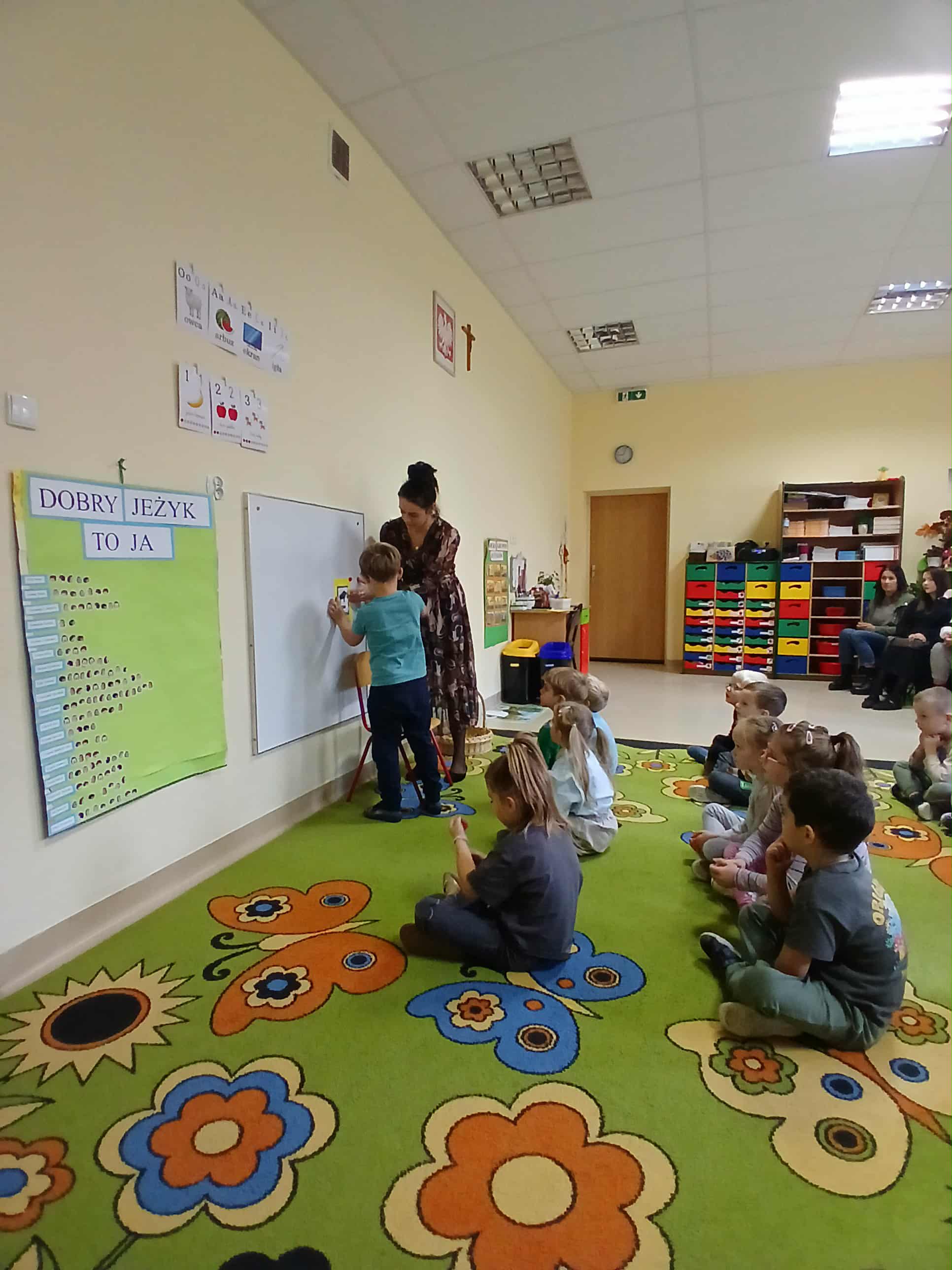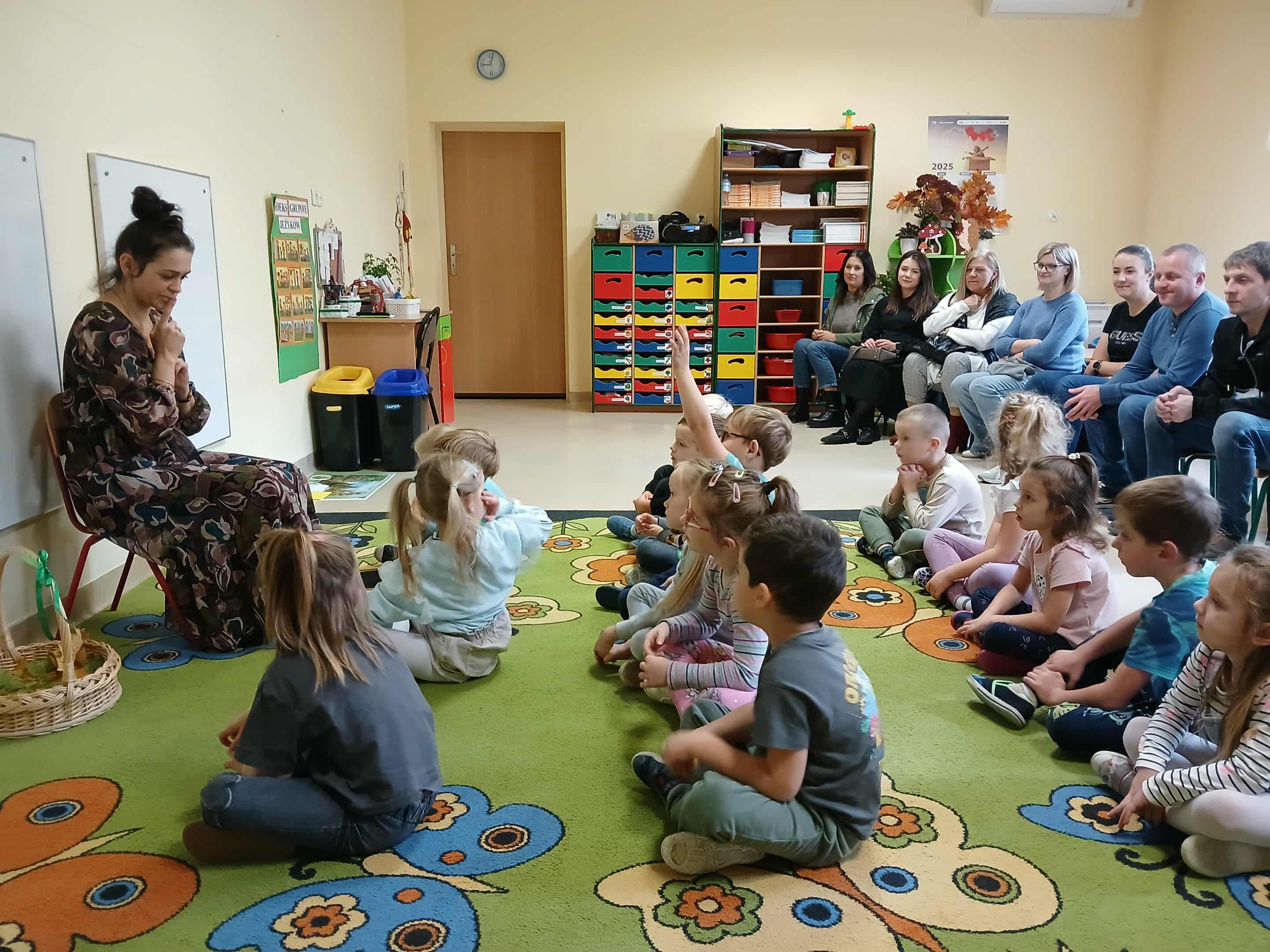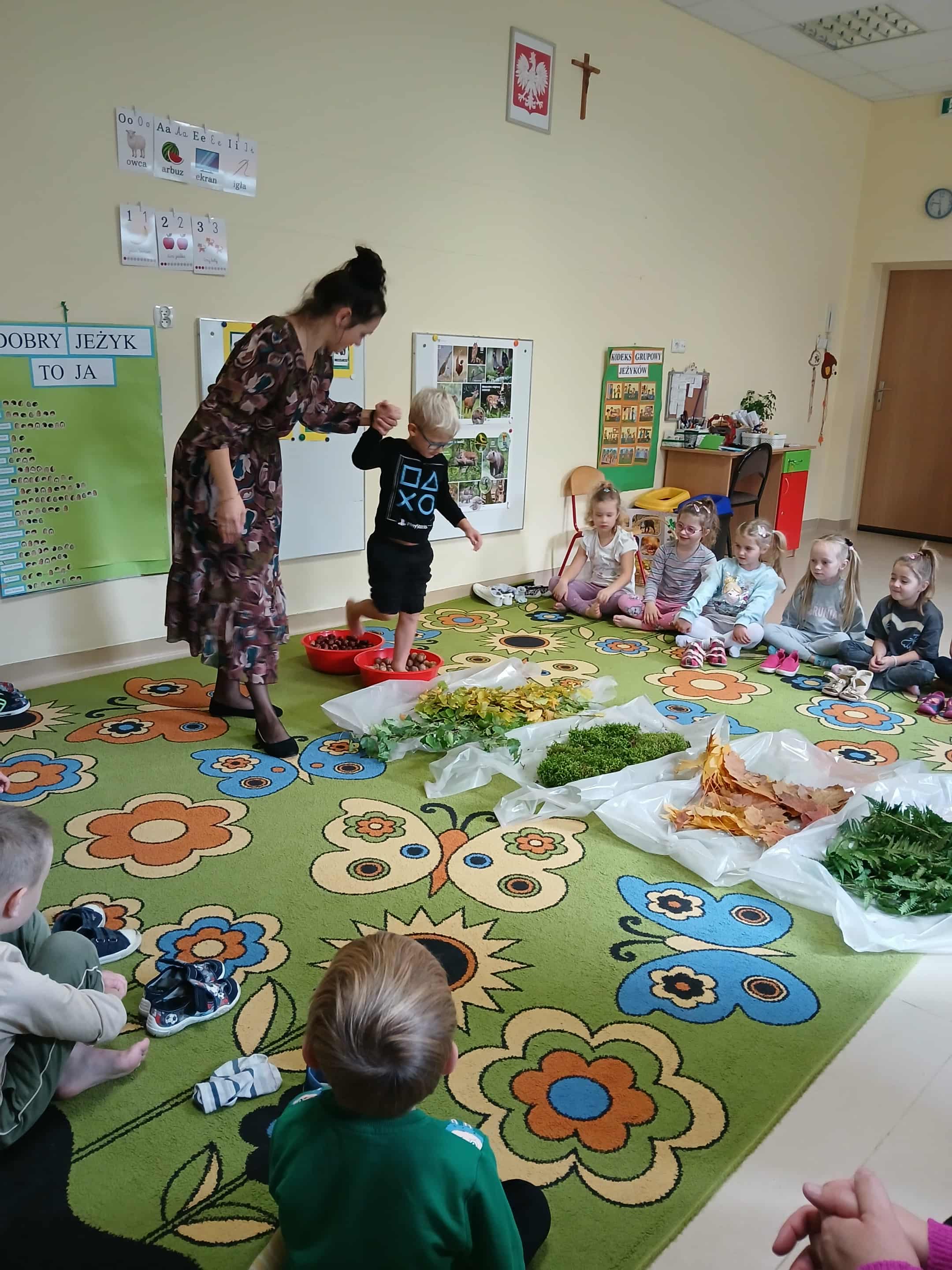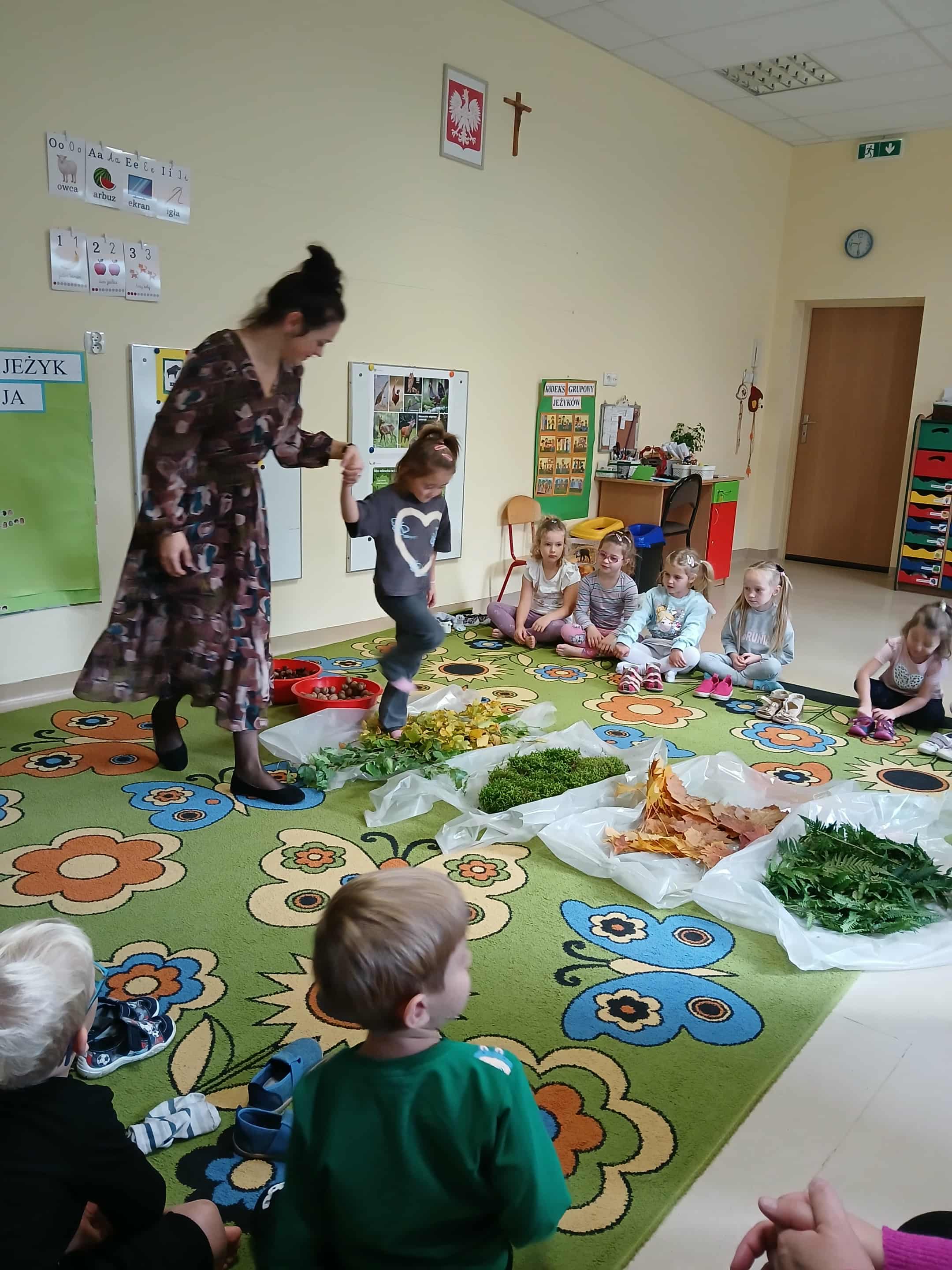 Zgodnie z tradycją przedszkola październik jest miesiącem, kiedy zapraszamy na zajęcia rodziców naszych wychowanków. Grupa 5-latków wzięła czynny udział w aktywnościach związanych z integracją sensoryczną. Temat przewodni stanowił las i jego bogactwa, zarówno fauna jak i flora. Serdecznie dziękujemy Państwu za przybycie.